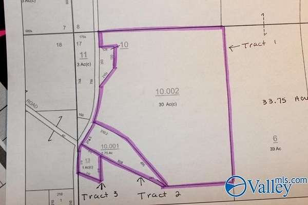 Est $2,172/moFYFFE/GROVE OAK AREA: 33.75 Acres Farm with Pasture Land with pond, fenced, paved road frontage, city water, currently cattle on property. Own your own Farm and start Making Memories!