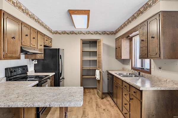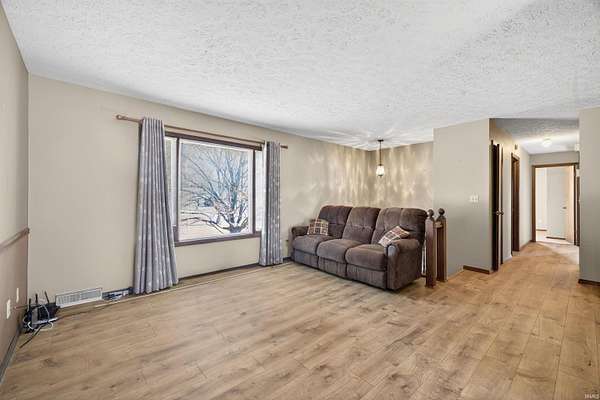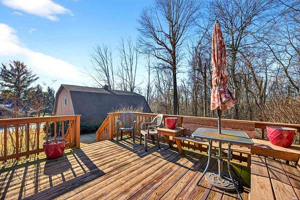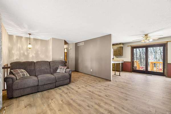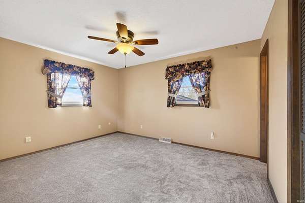 Situated on a 2.58-acre corner lot on the north edge of Bloomfield, this bi-level home offers room to spread out-inside and out. The property includes four bedrooms and 2.5 baths, with a flexible fourth bedroom that could also function as a family room, rec room, or home office depending on your needs. Recent updates include new laminate flooring and carpet, and the home is equipped with a heat pump providing both central heating and air conditioning. A large deck extends the living space outdoors, while the yard offers additional utility with a 15x12 mini barn. Garage space is a standout feature: an attached garage suitable for one car (possibly two), plus a 32x28 detached two-car garage with a second-floor area ideal for storage or potential future finishing. Kitchen appliances-including the refrigerator, electric range, and dishwasher-are included. Conveniently located just 45 minutes from Bloomington, this property offers a balance of space, functionality, and access to town while still enjoying a more open setting.