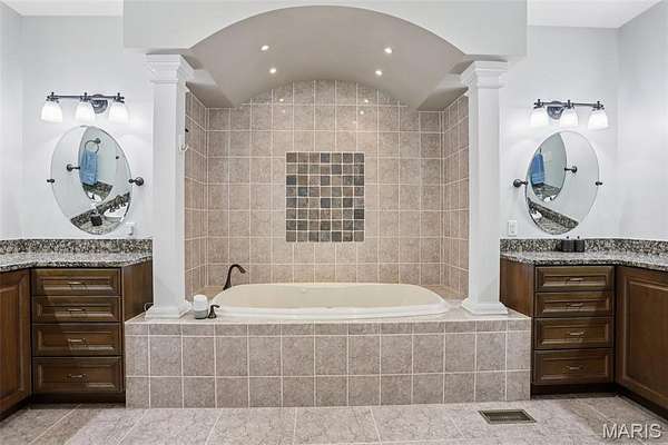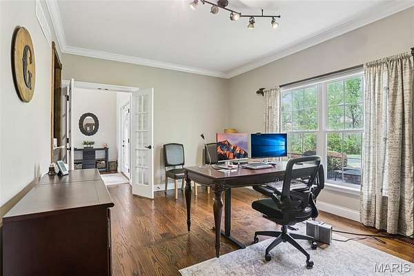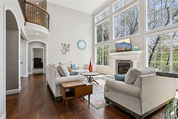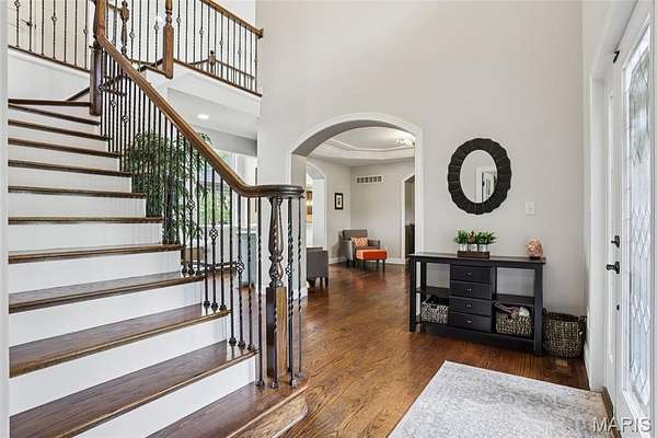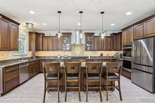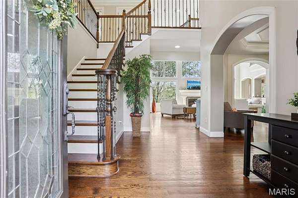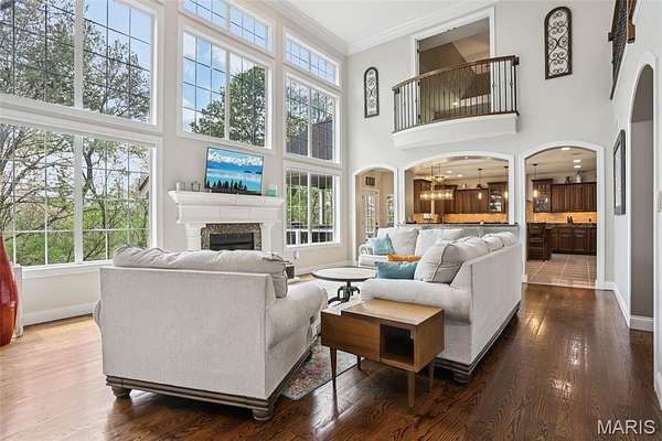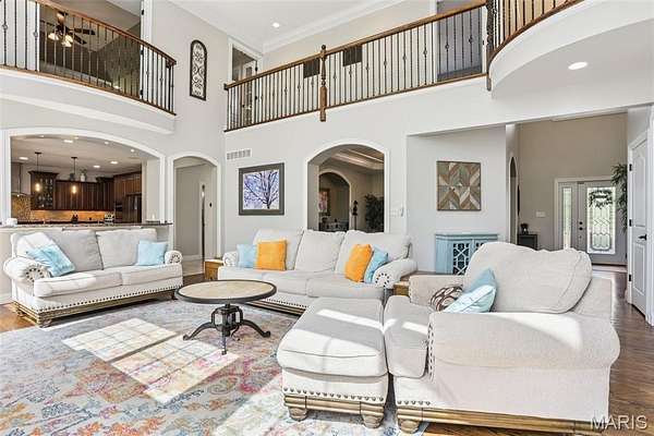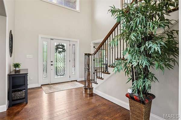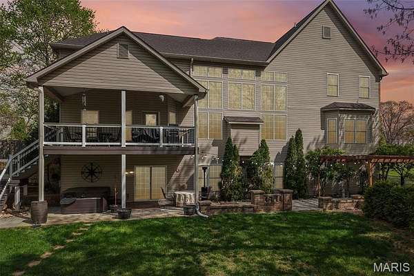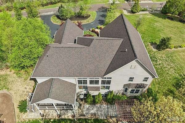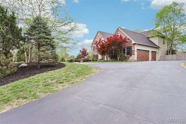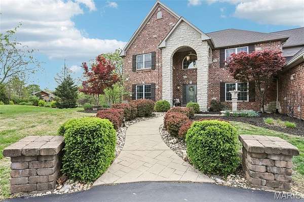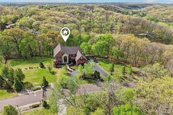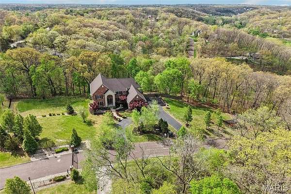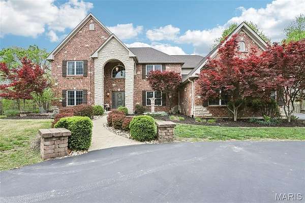 OPEN HOUSE CANCELLED Tucked within an exclusive gated community in desirable St. Louis County and located in the award-winning Rockwood School District, this stunning brick and stone estate offers luxury, privacy, and exceptional indoor-outdoor living on 3 acres. A circle driveway and side-entry 3-car garage create an impressive arrival, while the private, fenced backyard backing to mature forest provides a peaceful escape. Entertain with ease in the thoughtfully designed outdoor spaces featuring a biergarten, pergola, newer covered deck, stamped patio, and included hot tub.