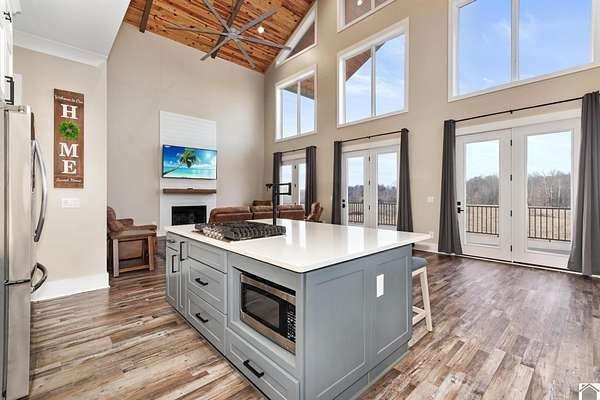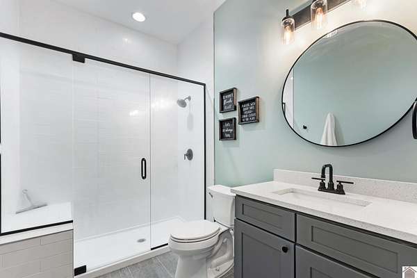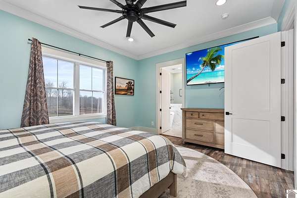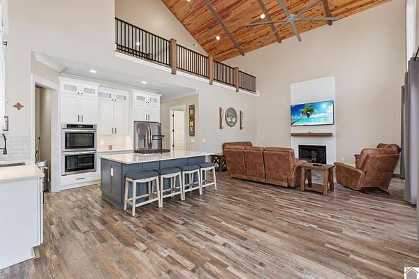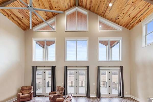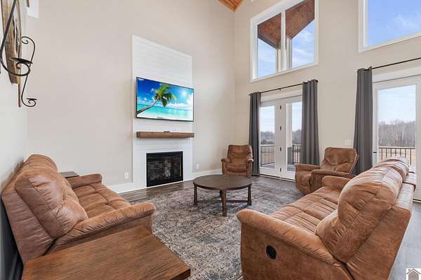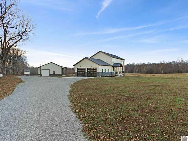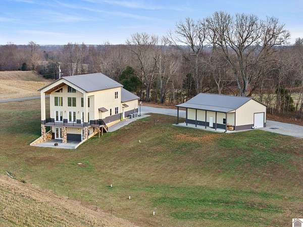 This STUNNING 4-5 BD, 4.5 BA modern estate delivers a rare combination of luxury, space and versatility. Selling fully furnished and sits on 49.21 acres, this like-new home features 3,627 sq feet, a dramatic 28 ft vaulted ceiling and floor to ceiling tinted windows to make this custom built home thoughtfully designed for both everyday living and grand-scale entertaining. Features include an open concept floorplan, chef's kitchen with walk in pantry & quartz countertops, primary ensuite on the main level, oversized 2 car attached garage, upstairs with loft, 2 bedrooms and bathroom, basement with bedroom, bathroom, living room, game area and wet bar. The detached garage offers a MIL suite, kitchen, washer/dryer, woodstove and 2 garage doors. This property has a 1.5 acre spring-fed, stocked pond. If you love to hunt and fish, you will love this home! Located close to 1-24 and 1-69. This unique home would be a great DREAM HOME or investment property. Priced to sell $969,000