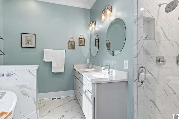 - Ceiling Fan(s), Ceilings 9+ Feet, Circuit Breakers, Closet Light(s), Double Vanity, Garage Door Opener, Separate Shower, Smoke Alarm, Soaker Tub, Tiled Shower, Tray/Vaulted Ceiling, Tub Shower, Walk-In Closet, Washer/Dryer Hookup, Wet Bar, Workshop