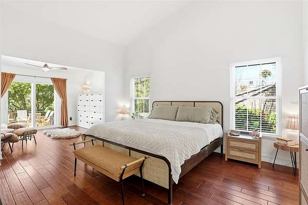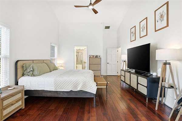 - Ceiling Fans(s), High Ceilings, Open Floorplan, Primary Bedroom Main Floor, Solid Wood Cabinets, Split Bedroom, Thermostat, Walk-In Closet(s)