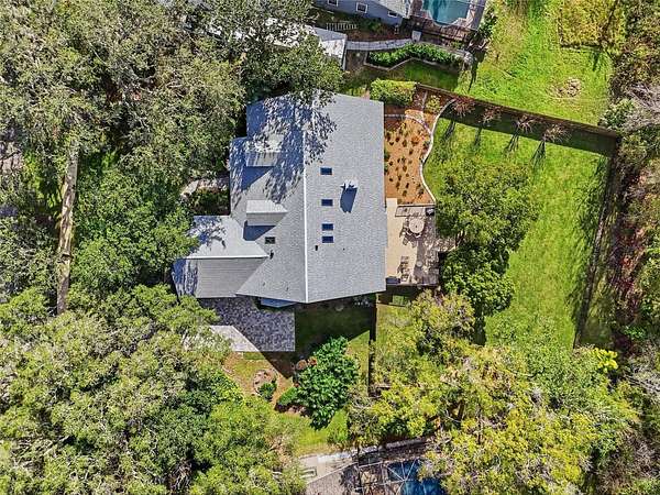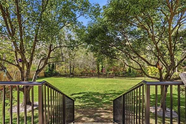 Enjoy a true backyard retreat with a fully fenced yard (wood privacy fencing on sides and aluminum picket fencing along the rear) preserving views of the private, protected woodlands. The outdoor living space was completely transformed in summer 2025 with new screened patio beams and screens, plus a raised paver deck and butterfly garden, creating an incredible outdoor oasis.