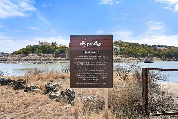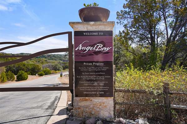 Welcome home to Angel Bay - an exclusive gated waterfront community in Spicewood Texas on Lake Travis. This amazing 5.048 acre lot is ready for you to design your dream home with breathtaking Lake Travis views. The lot gently cascades under the canopies of huge oak trees with an opening at an incredible wet weather creek and waterfall. Septic, propane and well needed. The community park is just 3 minutes away located at 302 Angel Song Cove which offers a gated clubhouse with restrooms, boat ramp and private marina. The communities HOA fee is $1,350 and paid semi-annually. This area offers exceptional convenience on the lake with several waterfront restaurants nearby like The Lighthouse in Briarcliff, Canyon Grille at Rough Hollow, Captain Pete's Boathouse at Point Venture, and The Sundancer Grill at Hurst Creek. Plus, the Pedernales Golf Course, Hill Country Galleria, Whole foods, Trader Joe's, fine dining are all nearby in the exemplary Lake Travis ISD. It's all here for you so stop dreaming and start building your lake lifestyle in the famous Texas hill country.