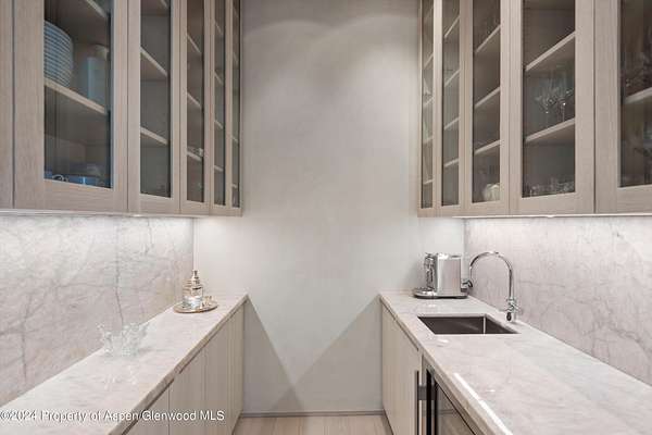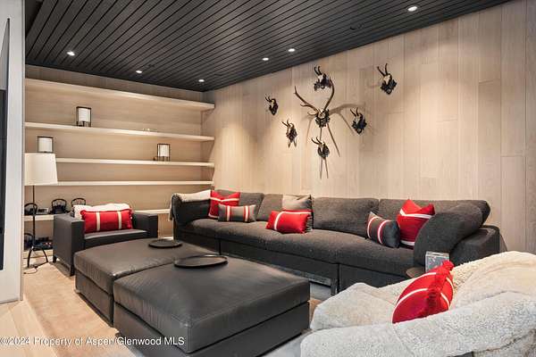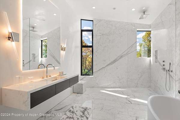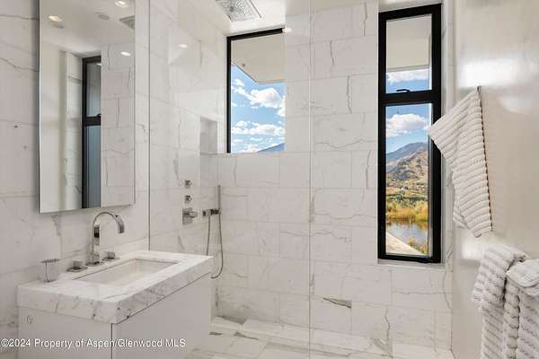 Situated in an exclusive and private community of only four homes on 100 acres, this exquisite 7-bedroom estate on Red Mountain defines mountain luxury, boasting expansive south-facing views through large windows that flood the home with natural light and capture stunning vistas of the surrounding peaks. The main level offers a gourmet kitchen, an elegant dining room, a spacious living room, a private office, and a luxurious primary suite. The lower level features a media room and a bunk room, and guest suites. Outside, enjoy the tranquility of a private pond, and an outdoor terrace.