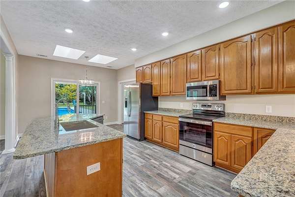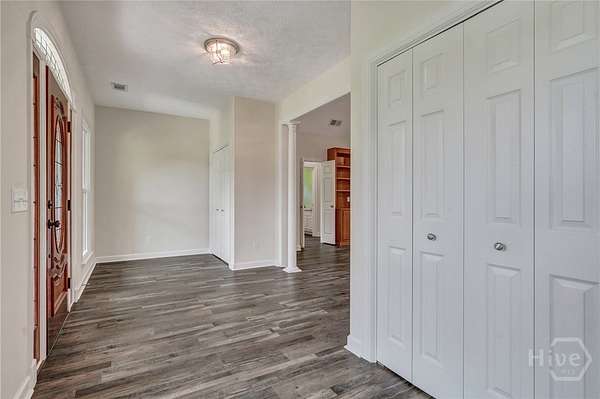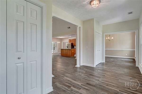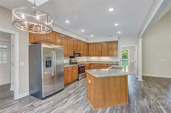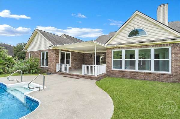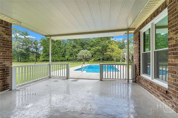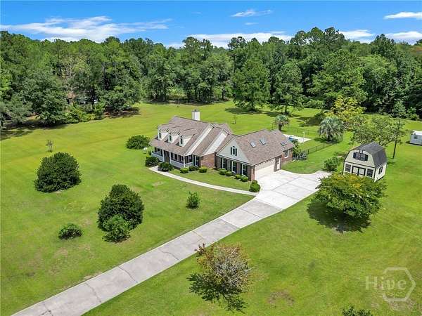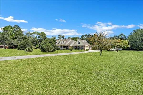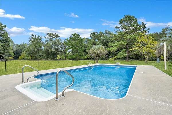 ENJOY COUNTRY LIVING ON 5.93 ACRES within reasonable proximity to shopping, restaurants, & entertainment in Pooler. Renovated full brick home; freshly painted, new luxurious vinyl floors, counter tops, appliances & more. 3 bedroom, 3 bath with a bonus room; or a 4 bedroom home that features a split bedroom plan ensuring privacy and comfort. The primary suite boasts an ensuite bath with double vanities, soaking tub and a separate shower. The welcoming foyer draws you to a spacious greatroom with a vaulted ceiling, built-in bookshelves and a cozy fireplace. The formal dining room leads to a fully equipped kitchen with ample cabinetry, new appliances, granite counter tops and breakfast area. Dble garage with a utility sink, closet storage, and protective apoxy floor covering. Step outside onto the covered oversized covered porch or sit in the heated and cooled sunroom and enjoy views of your own in-ground pool. Two versatile utility bldgs. BACK ON THE MARKET DUE TO NO FAULT OF SELLER.
