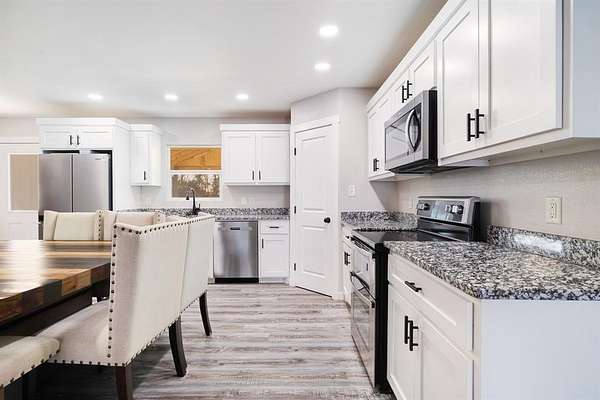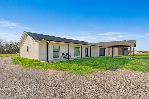 Newer built home on 1.65 acres just west of Paris, Texas is waiting for YOU! Open floor plan offers the opportunity to combine living and dining spaces with room to spare. The open kitchen features granite countertops, stainless appliances, pantry and custom cabinetry. For easy maintenance and durability, all floors are luxury vinyl plank in muted grey tones. The split bedroom floor plan brings complete privacy to the primary bedroom which is spacious and features a nice walk-in closet and private bath. Across the living space are two additional bedrooms and a hall bath. Laundry room is oversized to accommodate washer-dryer and perhaps a freezer. Heated and cooled garage has been used as an additional bedroom, however, can be easily returned to original state. Outdoors you will find plenty of space to run and play, grow a garden or add a shop. For extra parking and backdoor convivence, there is a two-car carport or could be a perfect outdoor kitchen! Fenced area for pets.