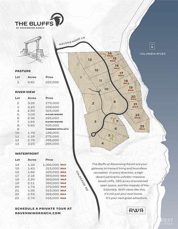 From Wenatchee head South on Malaga Hwy/Colockum Rd for approx. 13 miles becomes Colockum Rd. The entrance gate for The Bluffs will be on the left/riverside of the highway. Follow to lot on right.