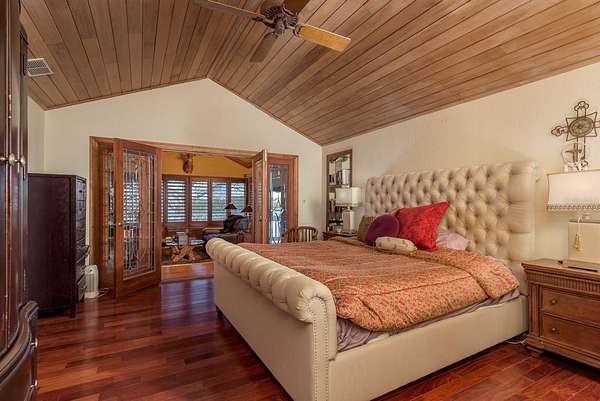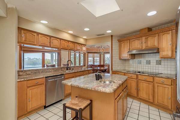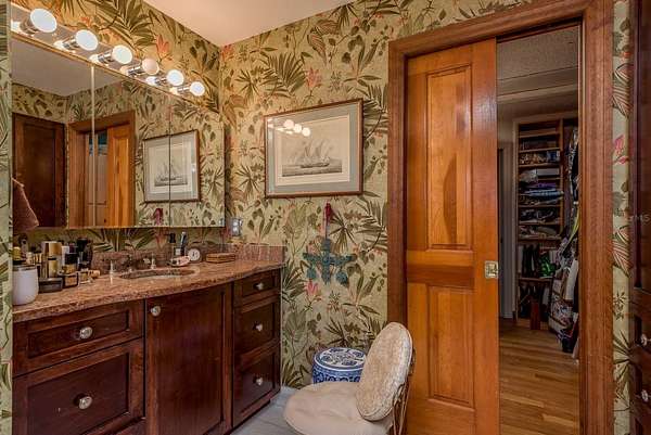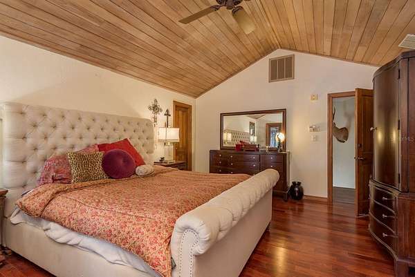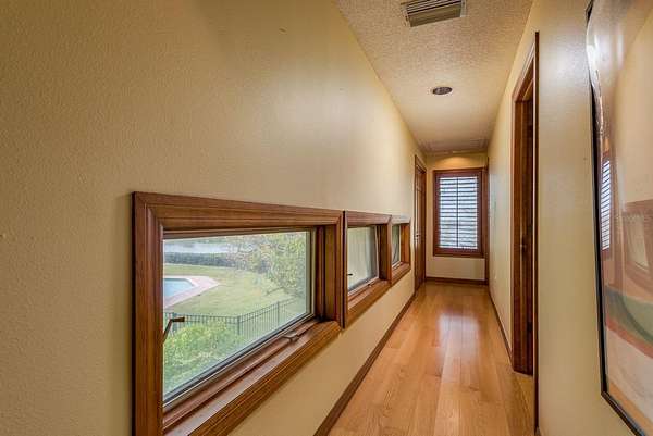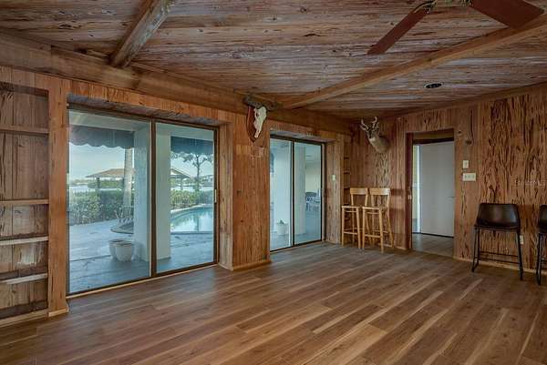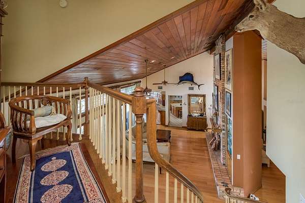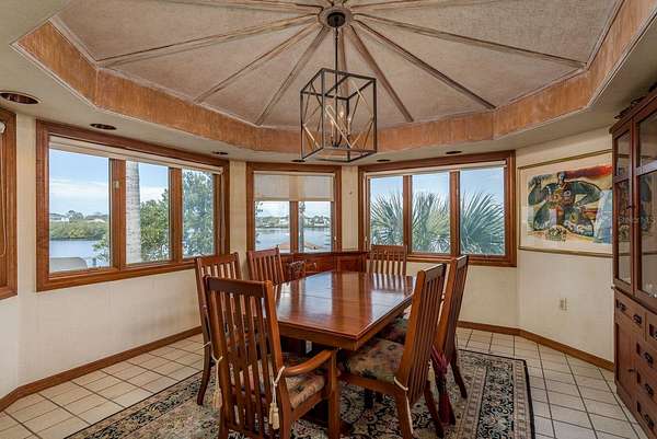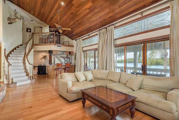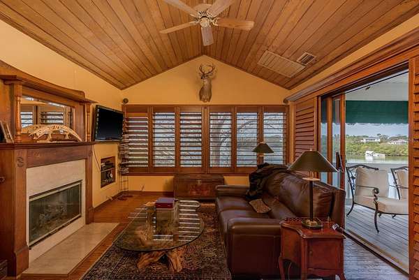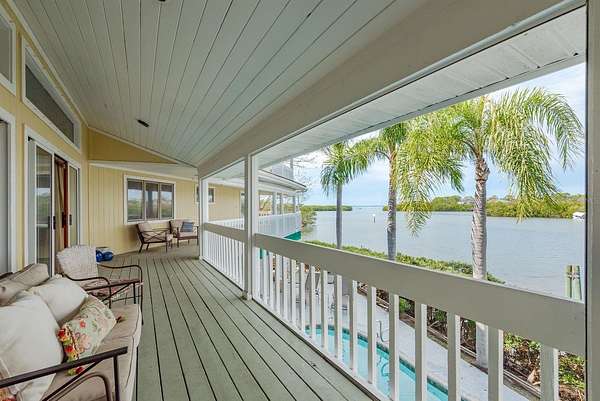 Up the grand open staircase, discover the luxurious primary retreat. A versatile bonus room off the landing ideal for an office, nursery, or additional closet precedes the spacious primary suite with soaring wood ceilings. Additional features include a hobby room or walk-in closet and a beautifully appointed en-suite bath with an oversized soaking tub, seamless glass walk-in shower, double vanities, private water closet, and a custom walk-in closet with built-in organization. A charming sitting room with a gas fireplace and vaulted ceilings adds warmth and character. Take in spectacular water views through custom plantation shutters or step onto your private covered balcony for morning coffee and coastal breezes. The ground level offers a fully equipped in-law suite with a full pool-access bathroom, living room, kitchenette with granite counters, and an additional enclosed flex room recently refurbished ideal for guests or multi-generational living. Two spacious garages, a workshop, and abundant storage complete the space. Notable upgrades include three HVAC systems (2017, 2018, 2020), Roof 2018, a monitored alarm system, two boat docks, and solar power. Situated in a beautifully maintained, HOA-free upscale neighborhood, this home is just minutes from charming downtown Palm Harbor and Crystal Beach, with endless dining, shopping, and award-winning beaches nearby. Tampa International Airport is only a 30-minute drive, along with excellent medical facilities and top-rated schools.