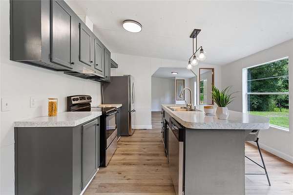 Under contract-accepting backup offers. Completely updated home on 10.21 acres in Bell, FL! Enjoy peace and privacy with plenty of room for outdoor living. This property features a brand new metal roof (2025), new HVAC (2025), and a new well. Inside you'll find a fully renovated kitchen and bathrooms, fresh paint, new flooring, and new skirting. The septic was inspected and passed in 2025, offering peace of mind for years ahead. The open floor plan provides comfortable living space, while the expansive acreage is ideal for gardening, recreation, or future projects. Located in Gilchrist County, this home combines modern updates with country living just a short drive to the Suwannee River. Move-in ready and set on a beautiful large lot!