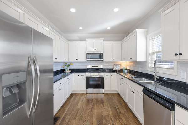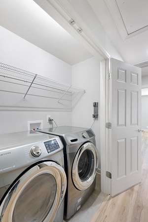 - Dishwasher, Disposal, Dryer, Electric Range, Microwave, Refrigerator, Stainless Steel Appliance(s), Washer