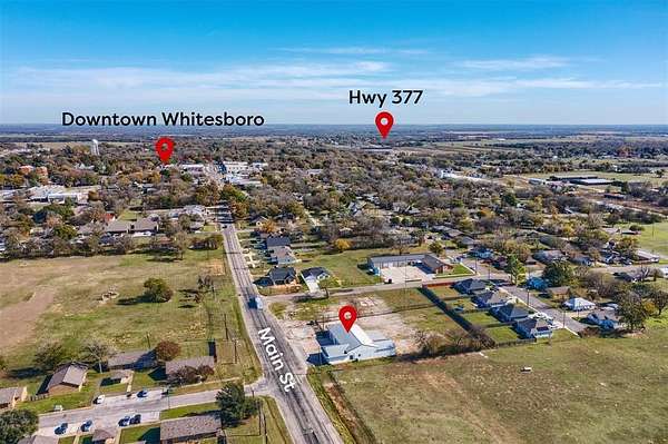 Hard to find, prime business location in Whitesboro with additional yard space for outdoor storage or parking. Perfect for warehouse, industrial or automotive business with high traffic visibility. Located at the western end of Main Street, with easy access to Hwy 82, and just minutes to Gainesville. Just over 5,400 sf of warehouse space with .4 acre of land for parking and storage. 4 grade level, docking doors, 2-11 ft. H. doors in front and 1-11 ft. and 1-8 ft. door in rear, providing easy accessibility for loading and unloading. Exterior canopies offer some covered parking areas. Office has central HVAC, with large reception area and four private offices. Build your business and enjoy the benefits of the growing town of Whitesboro.