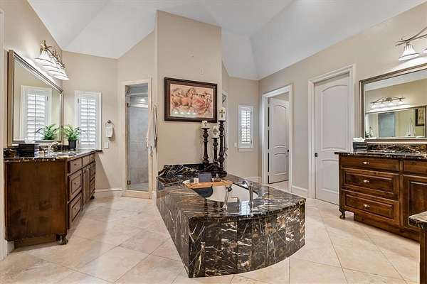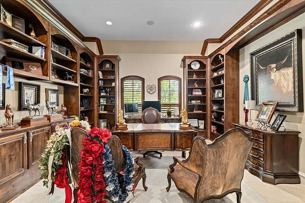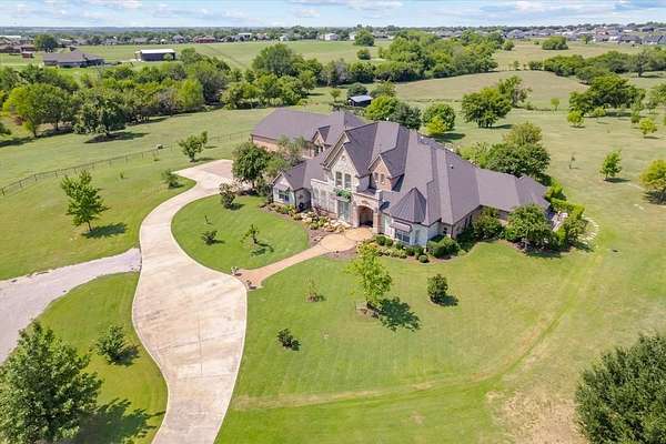 This breathtaking modern French farmhouse estate spans nearly 8,000 square feet and rests on just under 20 acres, with additional acreage available for purchase. Completely remodeled with custom finishes, this home combines timeless elegance, modern functionality, and every amenity for refined country living. Inside, you'll find handcrafted knotty alder cabinetry, Level 5 leathered granite, custom architectural shingles, and commercial-grade appliances. The home offers newer HVAC units, a hot water heater, and abundant storage throughout. The layout includes a lavish master suite with a private nook, multiple his-and-hers closets, and a spa-like bath with dual entrances into the oversized shower, plus a mother-in-law suite for extended family or guests. A grand office provides the perfect setting for work or study. Additional highlights include an oversized garage, state-of-the-art golf simulator with access to world-class courses, and thoughtful design touches at every turn. The property welcomes you through a gated entrance framed by majestic live oak trees and a circle drive, setting the tone for the estate's elegance. Outdoors, enjoy rolling pastures, fruit trees, a thriving garden, And a Custom Chicken coop and Greenhouse. A large storage facility provides room for an RV, boat, or recreational toys. The well water system handles all irrigation while city water is available for the home. The land carries an Ag Exemption for significantly reduced property taxes. Your backyard oasis includes a sparkling pool, basketball court, and multiple spaces for entertaining, making it ideal for both relaxation and gathering. Just minutes from I-35 This property is easily accessible to anywhere in DFW. Additional 43.93 of acreage can be purchased. See MLS# 21056251. Contact Listing agent for further details and additional photos.
