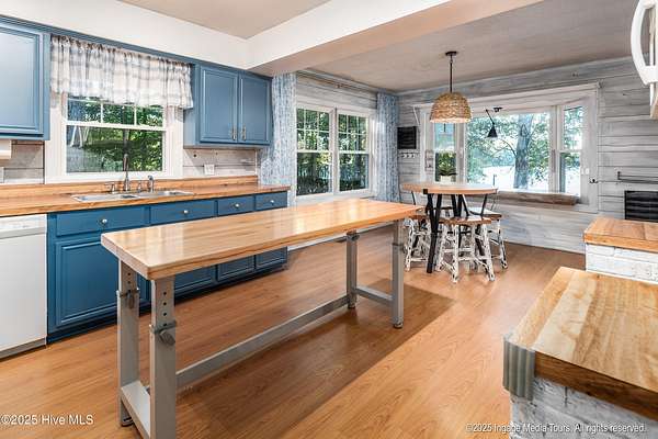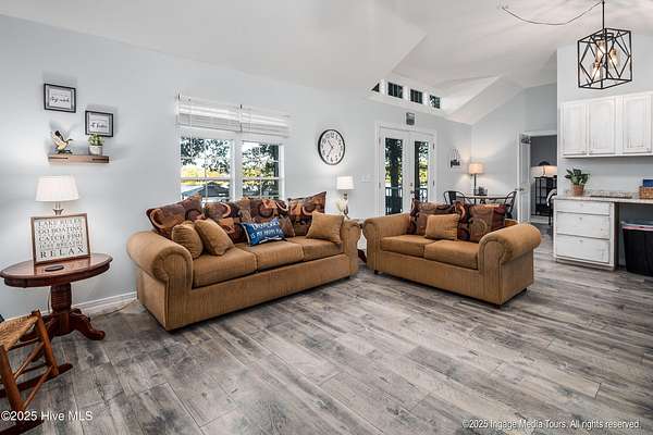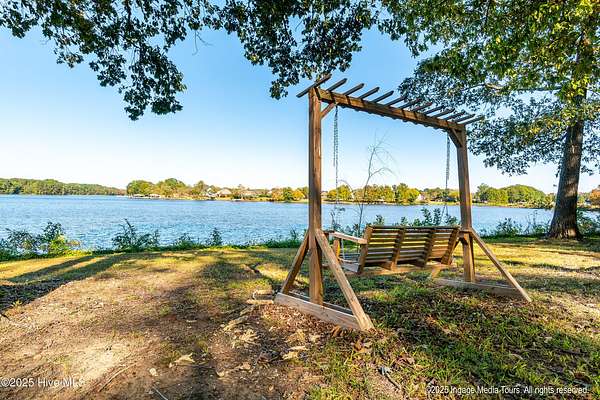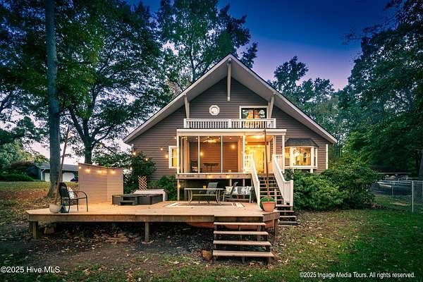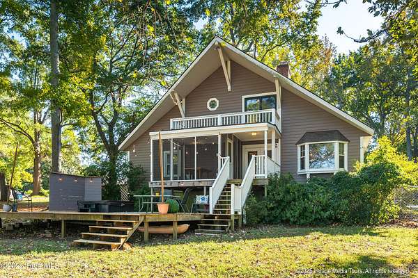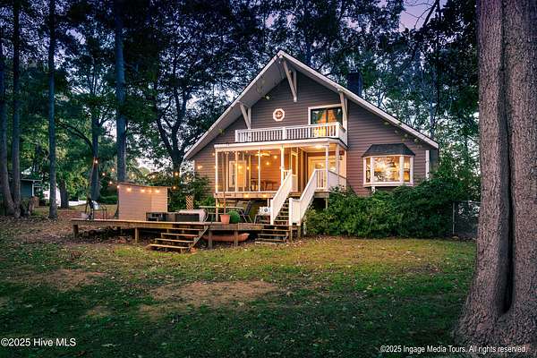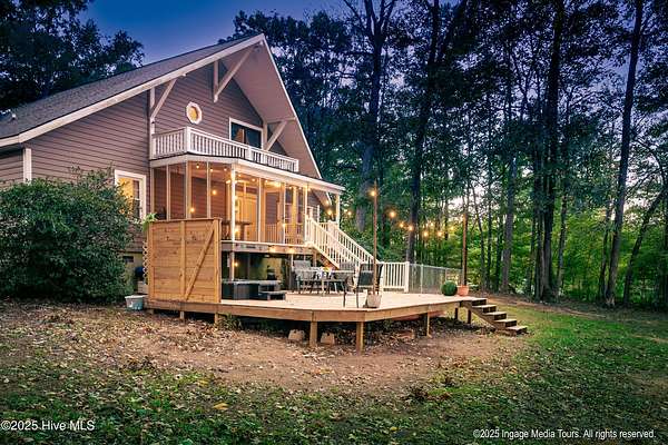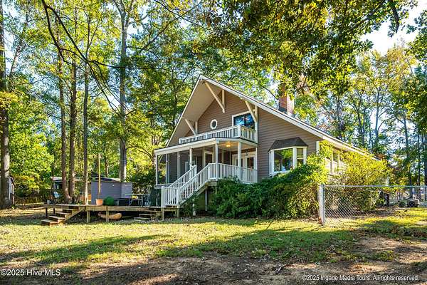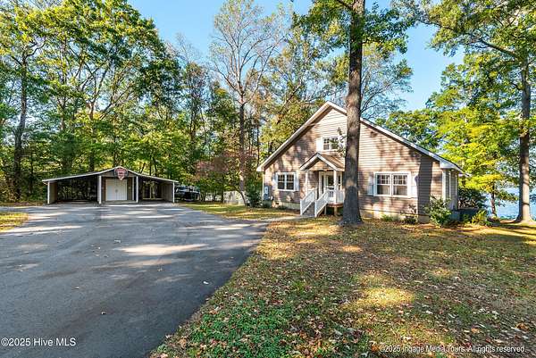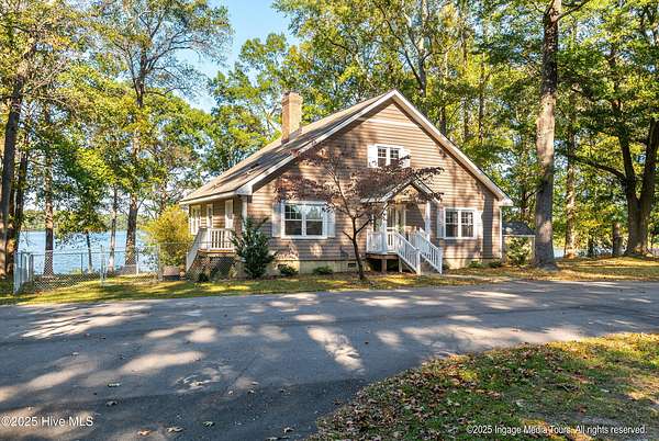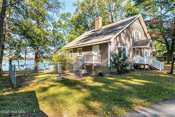 Stunning updated waterfront home with breathtaking water views, spacious living, modern upgrades, separate guest house (with bedroom, bathroom, kitchen, and living area), and outdoor amenities including a dock, hot tub, fire pit, and pergola...perfect for relaxing and entertaining! Beautifully maintained home with modern updates and serene water views in a quiet neighborhood. Recent improvements include a new roof, well pump, hot water heater, driveway, dishwasher, front porch steps, hot tub with slab, dock, decks, and fence. Inside, enjoy a spacious laundry room with ample shelving, a renovated kitchen with painted cabinets and custom faux oven hood, a custom office desk, updated bathrooms, wooden slat ceilings, modern lighting, ceiling fans, and built-in storage throughout. The detached guest house features a private back deck, while outdoor amenities include a pergola, fire pit area, and treehouse platform. This home blends style, functionality, and comfort, offering plenty of space for family living and entertaining while taking in the amazing water views.