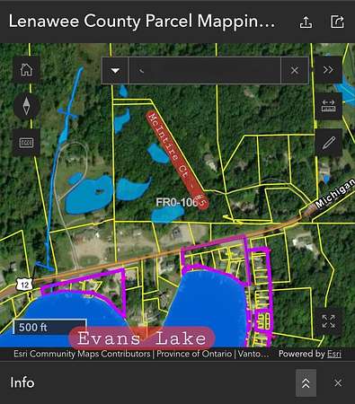 Last Chance! This is the FINAL remaining buildable lot, located in exclusive private hilltop neighborhood of McIntire Ct, overlooking Evans Lake. Build your dream home in this established neighborhood, tucked away in the woods w/gorgeous southern facing views of Evans Lake. Cleared areas allow for a vision & starting point for home placement. Approx 10 wooded acres gives you privacy, plenty of room to roam, & your own private pond. Utilities readily avail; natural gas & electric. Sellers are offering special limited LAKE ACCESS to private Evans Lake! What a perk! This residential lot can also be purchased in pkg deal w/the adjoining vacant commercial lot; US12 frontage. NOTE: Boundary Adjustment will be a req'd of transaction to correct lot lines & legal.