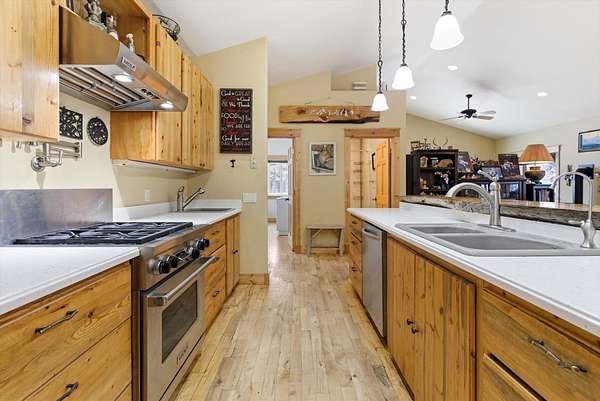 Just 10 miles from downtown Whitefish, this 3,177 sq ft home sits on a prime corner lot with 2.75 acres, offering the perfect balance of comfort, space, and Montana adventure. The open concept design features a stunning kitchen with a Wolf gas range, pot filler, wet bar, coffee bar, and a beautiful blue pine breakfast bar that adds warmth and character. Three bedrooms are located on the main level, including a spacious primary suite with a Jacuzzi tub. A second primary suite upstairs is ideal for guests or multi generational living. Radiant in floor heat runs throughout the home and even the garage floors. The third garage bay features an 18 foot door, perfect for larger vehicles, RVs, or toys. Enjoy the covered back patio and peaceful setting. Horses and chickens are welcome, RV parking is ready, and the fully fenced yard includes a 14x20 garden area and storage shed. This home is ideally located just 1 mile from Stillwater Lake and Stillwater State Forest, 6 miles from Whitefish Lake, and only 45 minutes from Glacier National Park. Situated within the highly sought-after Whitefish School District, it offers the perfect balance of privacy, space, and convenience. Enjoy room to roam while still being just minutes from downtown Whitefish and local amenities. Step out your front door and hit nearby trails, with endless year-round recreation right at your fingertips.