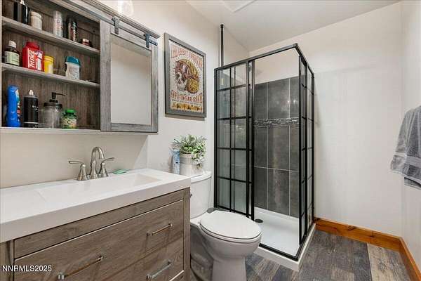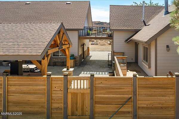 Experience the perfect balance of rustic elegance and modern convenience at this meticulously crafted horse property in Northern Nevada. Thoughtfully designed for low maintenance living and high-performance functionality, it's a standout retreat for equestrian enthusiasts and outdoor lovers alike. This Ranch features a finished 3-car garage with 14-foot ceilings, RV drive-through, and built-in hookups for all your toys. Trex Deck wraps around the residence, offering durability and year-round enjoyment. The Fire-resistant siding and a professionally paved courtyard maximize resilience and curb appeal. Included on the property are four stalls, two tack rooms, ample hay storage, and a fenced pasture with water. As you enter the home you will see details like Alder wood framed windows and soft close cabinets throughout. This chefs kitchen includes double ovens, updated appliances and an amazing island and upgraded countertops. This property has room to grow with possibilities for additional structures, the zoning allows a Granny flat for future build. Quietly nestled, just a short drive from Sparks with easy access to regional trails and public lands.