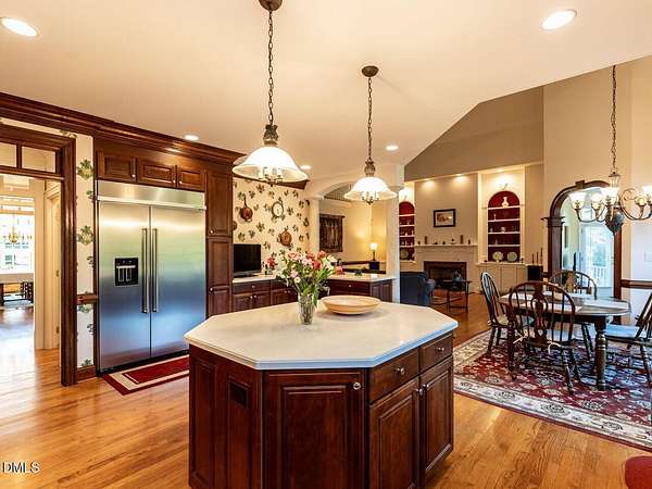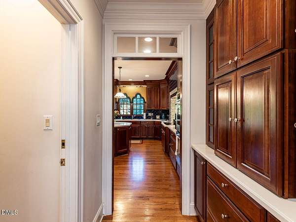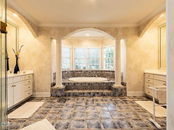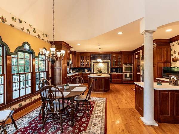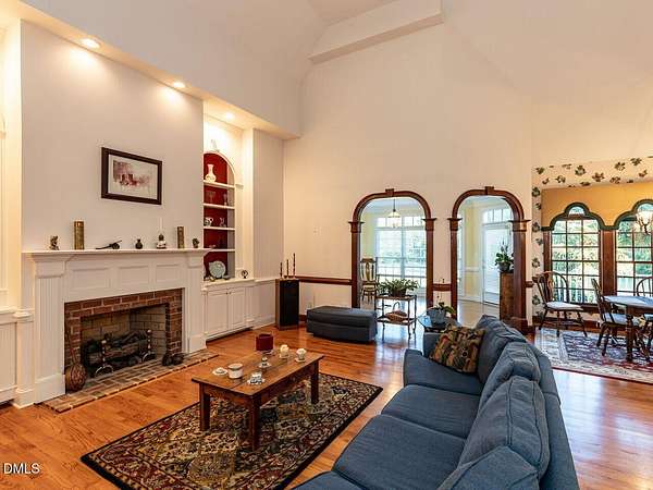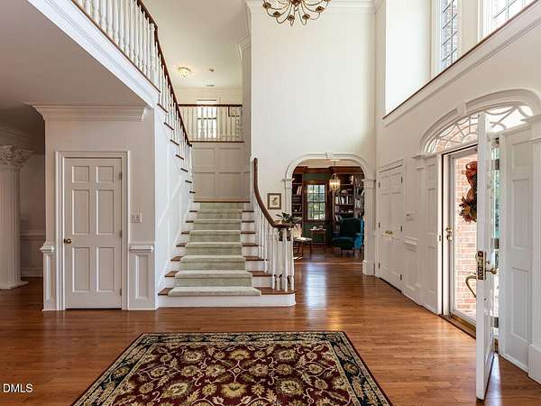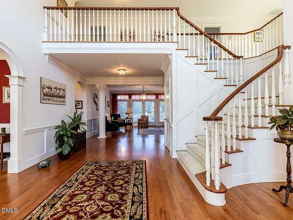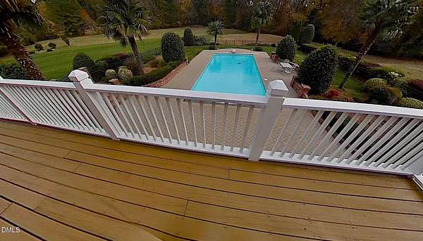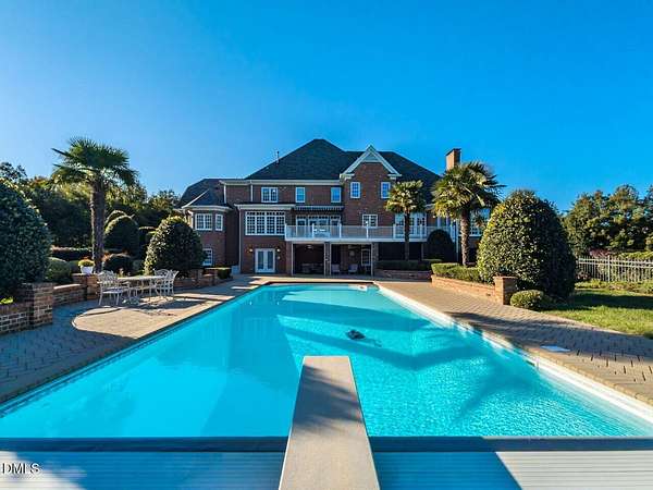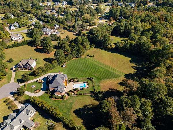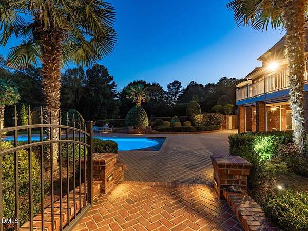 This stunning 9,228 sq ft ALL BRICK ESTATE offers unparalleled luxury and privacy on a sprawling 4.5-acre lot. Enter through a grand two-story foyer flanked by both front and rear staircases, and be greeted by elegant formal spaces, a sun-filled family room with fireplace, and a chef's kitchen with center island. The first-floor primary suite is a serene retreat, while the formal living and dining rooms, study, and guest powder rooms provide exceptional functionality. Upstairs, enjoy four additional bedrooms, three full baths, a bonus room, and office, with a walk-up unfinished third floor (1,350 sq ft) ready for future expansion. The 2,600 sq ft fully finished lower level offers exceptional versatility with two bedrooms/offices, a full bath, a home theater, and a kitchen rough-in. With both interior and private exterior access, it's ideal for guests, meetings, hobbies, or personal projects. The expansive driveway provides ample parking, and this flexible space can function as a professional practice area, creative studio, or gathering room-adding impressive value to the home. Step outside to your private oasis: a resort-style pool surrounded by palm trees, enhanced by extensive outdoor lighting and a full outdoor sound system, an under-deck retreat with motorized retractable screens and kitchen plumbing, and a 518 sq ft deck with motorized awning. The front entrance features an elegant Italian marble fountain, architectural lighting, and an outdoor sound system. Mature landscaping, an 17-zone irrigation system, and well water ensure beauty year-round. Electricity costs about $2,100 per year and natural gas about $1,400, with three adults living in the home, reflecting the home's high-efficiency HVAC systems, gas heating, LED lighting, and insulation-resulting in unusually low operating costs for a 9,227 sq ft residence. The well keeps pool and 17-zone irrigation costs very low. Thanks to the motorized cover, salt-cell chlorination, and automatic vacuum, the saltwater pool is extremely low-maintenance-only the skimmer and robot need cleaning every other week in peak season. The Italian marble fountain is also low-maintenance, with automatic level control and auto-fill eliminating the need to add water in summer. Additional highlights include a whole-house intercom with built-in speakers and microphones in every room, a comprehensive security system, combining luxury, technology, and comfort for an exceptional Raleigh/Cary lifestyle. (2) water heaters 1 & 3 years old. New roof with architectural shingles done in 2021, HVAC heat pump 2 yrs old, pool pump motor 1 year old, well pump 2021, dishwasher 7 yrs, microwave new, KitchenAid 48'' refrigerator 2 years, JennAir double oven 6 years. Septic system is permitted for 5 bedrooms. This house has been meticulously maintained!