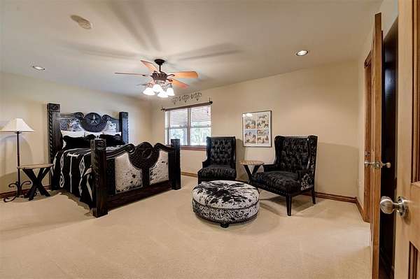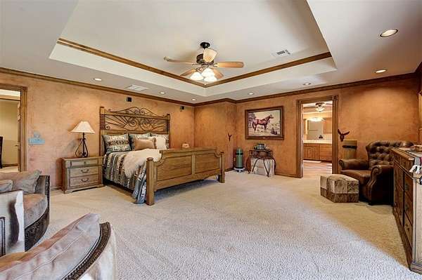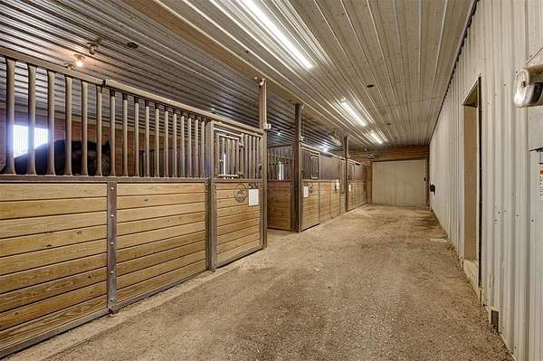 Step onto this amazing 25-acre (mol) property that is every equestrian's dream! This property has the convenience of being just outside of the heart of Edmond while also having the feel of seclusion & privacy. This home has a private road that leads up to the property as well as a gated entrance ensuring security. As you drive through the property you will see multiple fenced-in pastures with loafing sheds & 6 Nelson heated automatic waters. At the top of the property sits a beautiful ranch-style home that fits in perfectly with the wooded landscape. Inside, you will find that no detail was overlooked with a beautiful sunken den perfect for cozy nights, a large great room off of the kitchen that has vaulted ceilings with stunning stained timber beams, dual sliding glass doors flank the room for a beautiful cross breeze on cool summer nights, a statement fireplace, floor plugs for convenience and so much more. In the kitchen you will find stunning custom cabinetry, Thermador appliances including an integrated dual fridge/freezer, gas range, warming drawer, dual oven, ice-maker, and microwave. This kitchen has it all and is truly a chef's dream. Off the kitchen is the guest quarters with a bedroom and full bathroom. On the other side of the home is the primary bedroom with private patio access and en-suite bathroom. The bathroom has custom his and hers vanities with plenty of storage, large picture windows, soaker tub, walk-in shower, toilet closet, and custom walk-in wardrobe. There are two additional bedrooms, a jack-and-jill bathroom with plenty of storage, as well as a finished basement. The property has a barn with large office, half bath, 9 horse stalls, riding arena, wash bay, stocks w/ foal compartment, tack & feed rooms, walker, pipe and v-mesh fencing along w/ durable white PVC fencing, shop with electricity, automatic 22KW house generator, a lean-to for large equipment, hay storage and 4-5 acre paddocks w/ multiple smaller paddocks. This home is a must see!