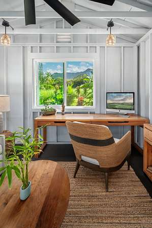 If you're looking for a view property with generous acreage for farming pursuits-while staying just minutes from world-class beaches and the charm of Kilauea town-this North Shore estate may check all your boxes. Nestled at the base of Mt. Namahana, this nearly 9-acre farmhouse property offers sweeping mountain views and a true country-living experience. The beautifully maintained main residence features 3 bedrooms, 2 baths, plus a bonus room ideal as a 4th bedroom. Interior details include vaulted ceilings, granite countertops, DeWils solid oak cabinetry, and a cast-iron wood-burning fireplace perfect for cool winter evenings. A detached office cottage provides added flexibility for work, guests, or creative space. A spacious wraparound lanai invites relaxed outdoor living with panoramic views of the surrounding mountains and pastureland. The property is fully fenced, with approximately seven acres of usable, level pasture-ideal for farming, ranching, or grazing animals. In the back corner of the property, a small stream runs through, offering a true sense of nature. There is also potential for a guest house and additional accessory buildings (buyers or buyer's broker to confirm details with the listing agent and County agencies). The land is abundant with fruit trees, including mango, navel and Valencia orange, tangerine, lemon, lime, grapefruit, and more. Located in the desirable Kalihiwai Ridge community, this peaceful retreat is just minutes from Kilauea, Princeville, Hanalei, and Kauai's most beloved beaches. Whether you envision a working farm or a private estate, this property offers exceptional opportunity in one of the North Shore's most desirable settings.
