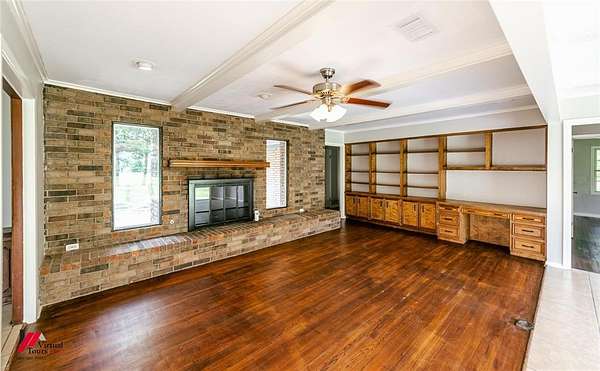 Desirable North Shreveport Acreage Property! This spacious home offers 3 bedrooms, 3 full bathrooms, plus a bonus room that can easily serve as a 4th bedroom--all situated on over 3 acres of fenced land, perfect for horses or other animals. Step into a large living area featuring a central fireplace, beautiful wood built-ins for upscale storage, and expansive windows that flood the space with natural light. The open-concept dining area continues the bright, airy feel with sliding glass doors that lead to a generous backyard patio--ideal for entertaining or relaxing outdoors. The updated kitchen includes a brand-new oven and range combo, a sleek built-in microwave, and a cozy eat-in area. Prefer more living space? The large formal dining room gives you that flexibility. Outside, you'll find a greenhouse and barn, offering even more options for hobby farming or gardening. Inside, the home blends original charm--like hardwood floors and ample built-in storage--with tasteful upgrades throughout. Don't miss your chance to own this move-in ready home with acreage, charm, and room to make it your own--all at an incredible value!