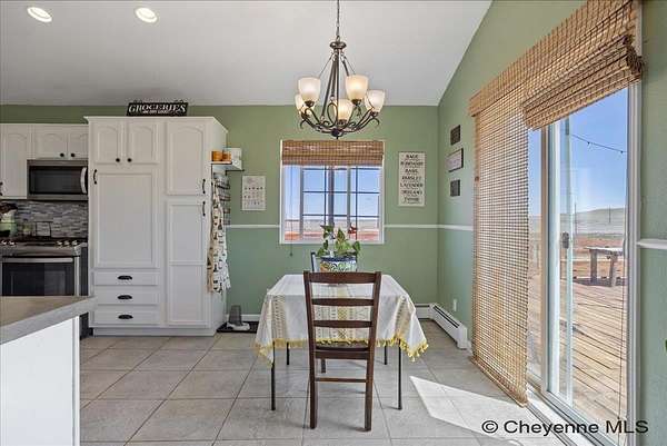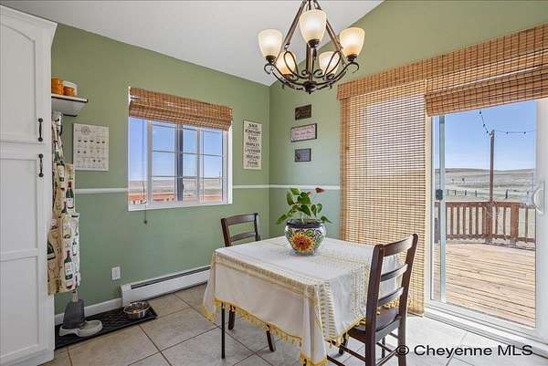 Welcome to this beautiful custom-built 4-bedroom, 2-bathroom open-concept home. You find a bright and airy living space with updates throughout, flowing effortlessly into the dining and kitchen areas. Enjoy cozy evenings on the oversized deck, where views of the city lights. The property includes an oversized heated garage, ideal for hobbyists or extra storage. Horse lovers will appreciate the horse-ready setup, making it easy to enjoy rural living just minutes from town. Brand-new boiler heating system. Great location for travel or commutes to Colorado.