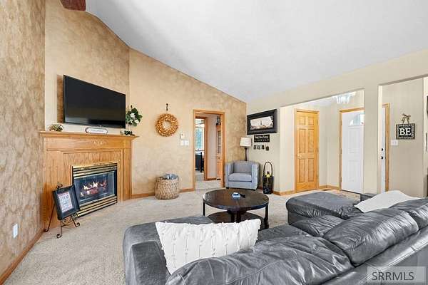 Welcome to this inviting 5-bedroom, 4-bath home set on a spacious lot with mature trees and wide-open views. The main level features vaulted ceilings, a cozy fireplace, and large windows that fill the living area with natural light. The kitchen and dining space flow easily for both everyday living and entertaining. The primary suite is a private retreat with deck access, a walk-in closet, and a spa-like bath complete with dual vanities, jetted tub, and separate shower. Four additional bedrooms and multiple baths offer plenty of space for family, guests, or a home office. The finished basement expands your living options with a large family room, walkout access to the backyard, and a unique salon setup perfect for a home business or creative space. An attached 2-car garage provides convenience and storage. With space to spread out indoors and out, this home combines comfort, flexibility, and functionality in a peaceful setting you'll love to call your own!