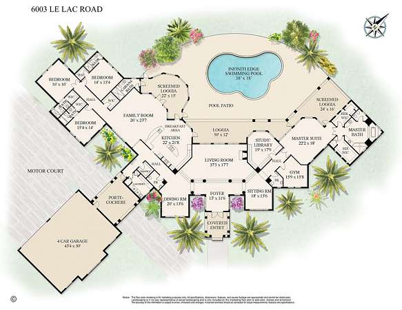 Le Belle Refuge, a 5 Bedroom European Villa sited on a 3 +/- Acre Lakefront Parcel, is located in renown Le Lac which offers world-class security & the utmost privacy w/i minutes to Boca Raton private airport & prestigious private schools. This single level luxury residence offers long lake views and glorious sunsets from nearly every room. The north wing is comprised of the primary suite, a gym & office/optional bedroom & half bath. The south wing is comprised of 3 ensuite guest rooms. The heart of the home is a grand living room, an open kitchen/breakfast area/ family room flowing out to a screened lakefront loggia. Le Lac is comprised of only 32 estates nestled on 200 acres of sprawling lawns & sparkling lakes and is the only community in Central Boca Raton that permits boating.