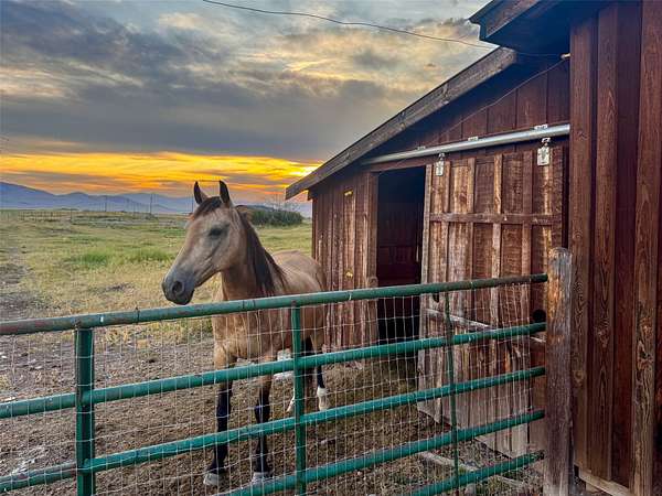 Experience the best of a Western Montana lifestyle in this stunning Mission Valley home, where sweeping views of the Mission Mountains provide a dramatic backdrop to everyday life. Whether enjoying a sunrise over the peaks or relaxing in your private outdoor spaces, this property captures the essence of Montana living. The jaw dropping scenery on this fully fenced 5 acre property offers an incredibly versatile layout ideal for entertaining, multi generational living, farming, or running a business from home in the newly constructed over sized 60 foot by 40 foot fully insulated shop. There is even solar power to supplement the electric use of the home! The irrigation canal passes through the property giving you water where its needed, when you need it most. An on demand tankless water heater ensures that you will have hot water at the faucet each and every time you want it. The quality Amish built home features 4 bedrooms, 2 full bathrooms, and a partially finished attic space to be used as you desire. With open concept living areas upstairs and down, this home is perfect for large gatherings or flexible use as entertaining space. The main floor showcases a beautifully appointed kitchen featuring custom Troyer cabinetry with soft close drawers and built-in organizers, offering exceptional storage and craftsmanship. Stainless steel appliances including a gas range pair perfectly with the granite countertops and custom tile backsplash. A pleasant view over the kitchen sink adds to the charm, creating a warm and functional space ideal for both cooking and entertaining. The gourmet kitchen and open living areas are ideal for entertaining or family gatherings, while the landscaped yard featuring flowers, fruit trees, and berries provides a safe and vibrant space for kids and pets alike. For those who love animals or outdoor hobbies or small farms, the property includes three fully fenced areas for livestock. An Amish built two car garage with an attached multiple horse stalls ads versatility to this property. With privacy and character at every turn, this property offers a unique lifestyle opportunity that is adaptable perfect for anyone seeking room to grow and enjoy the outdoors. This walk-out day light basement has it all! A full wet bar, cozy fireplace, access to a private patio, a bonus cold storage room which can be used as a pantry or wine cellar. You will want to find a comfy seat to enjoy movie nights or watch the big game. Did we mention the two spacious bedrooms and a full bathroom downstairs? The French doors open to a sun-filled patio with beautiful terrace style planter boxes perfect for your favorite flowers, or garden produce. Try to find the hidden laundry room behind the custom sliding barn door which keeps everything organized. With extra dining space, two huge windows, and an open layout, this downstairs retreat is perfect for entertaining friends and family. The brand-new 60' x 40' Amish Built commercial-grade shop with 4" spray foam insulation, a 120,000 btu shop furnace, and an attached lean-to that is pre plumbed for radiant floor heat and a bathroom, and ready for a large office, living quarters, or spectacular tack room. This part of the shop is pre plumbed for a shower, sink/bathroom for living quarters or an office. The trusses are 16' high to the rafters with a 14' insulated shop door!! Truly a 1 of a kind building. Do not miss out on this by letting it pass by. Key Features Include: - On demand tankless water heater - Fireplace - Radiant heat - 4 bedrooms - 2 full bathrooms - 60' x 40' insulated shop with pre plumbed with radiant floor heat - Fully fenced property - Solar power supplement - Bonus attic space for storage or future room - Open floor plan on both levels - Patios on both levels with mountain views - Professionally landscaped yard - Large laundry room - 10 gpm domestic well - Irrigation well and canal access - Finished outbuilding + two-car garage with horse stalls attached - Additional outb