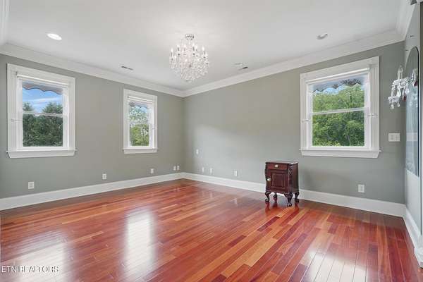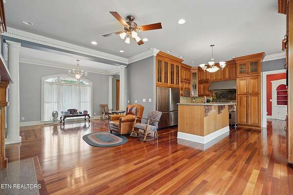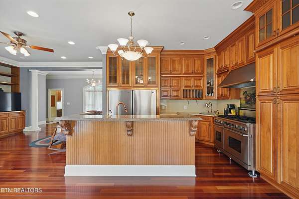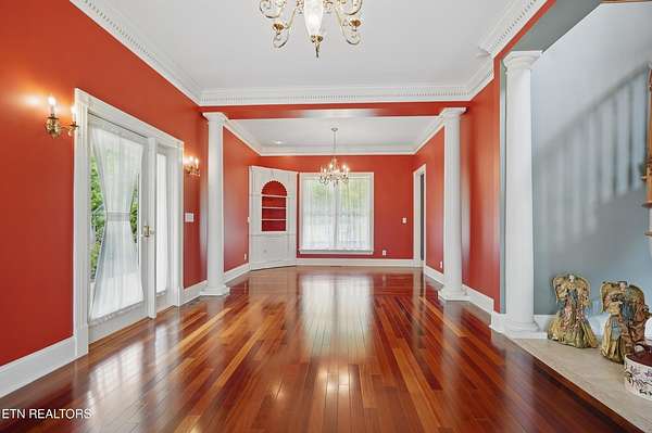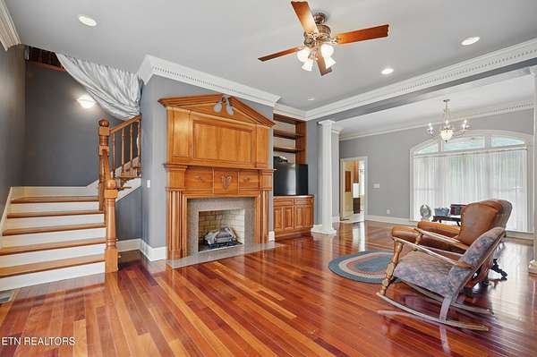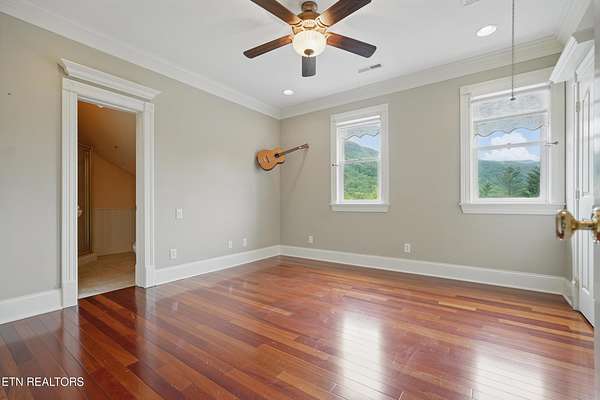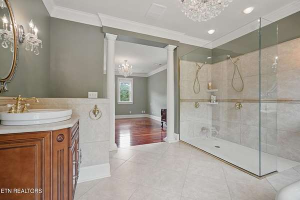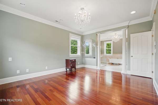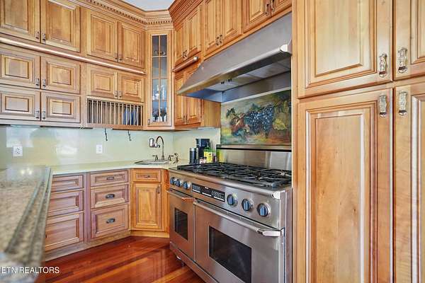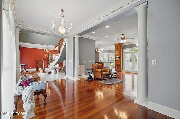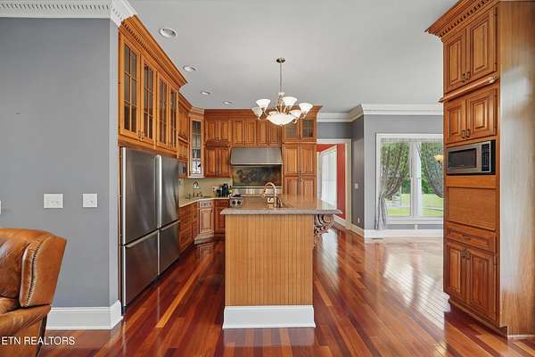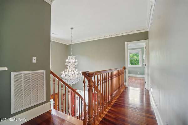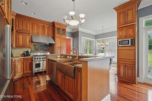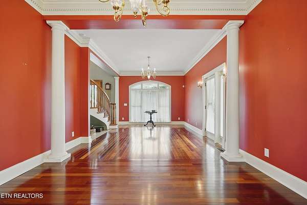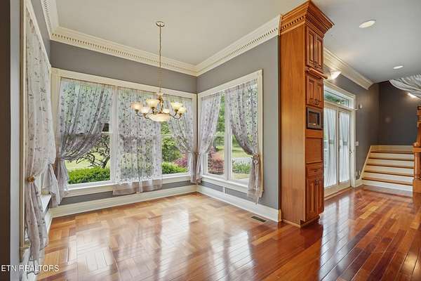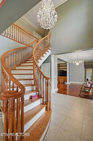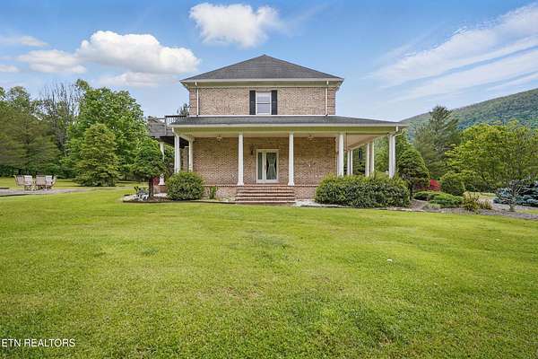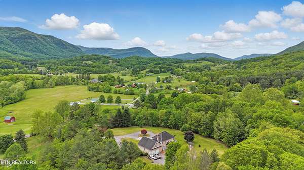 Elegant Mountain Retreat with Luxurious Features - 6005 Powell Valley Road, Big Stone Gap, VA Discover timeless elegance and refined craftsmanship in this custom-built 4-bedroom, 4-bathroom home nestled in the heart of Powell Valley. Located just one mile from the scenic Lonesome Pine Golf Course, this exceptional property offers the best of both worlds-peaceful rural living with the convenience of town amenities nearby. Set against a breathtaking backdrop of Grindstone Ridge and rolling mountain views, this home is a rare find. Step through the stately double wooden doors with etched glass and be greeted by one of two hand-crafted wooden staircases and a dazzling crystal chandelier that sets the tone for the grandeur within. Every bedroom in this spacious home is an en suite, offering ultimate privacy and comfort. Both levels showcase rich Brazilian Cherry hardwood floors paired with 20-inch porcelain tile, intricate dental crown molding, and a propane fireplace with a custom Cherry wood mantle-convertible to wood-burning for cozy evenings. The gourmet kitchen is a chef's dream, featuring Cherry cabinetry, quartz countertops, a hammered copper double sink, a one-of-a-kind hand-painted backsplash, dual stainless-steel refrigerators, and a high-end Dacor 6-burner gas stove with double ovens. All bathrooms are beautifully appointed with top-of-the-line fixtures and finishes. One bathroom features a show-stopping custom-painted Victorian bathtub that adds a touch of artistry to everyday living. Upstairs, wide crown molding complements the quality finishes throughout the home, continuing the sense of refined craftsmanship in every corner. The two-lane driveway leads to the private 5.5-acre parcel with a large level yard that is easy to maintain and the oversized 2 car garage. Located at the back of the property is a large metal building with high ceilings that is a perfect workshop for the hobby enthusiast or extra storage. With mountain views, high-end details, and a layout ideal for both entertaining and comfortable daily living, this home is a must for those demanding luxury. Buyer to verify all information.