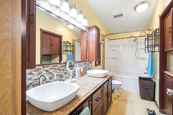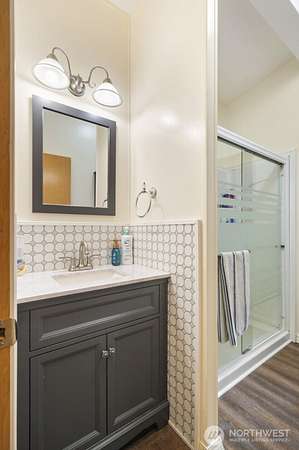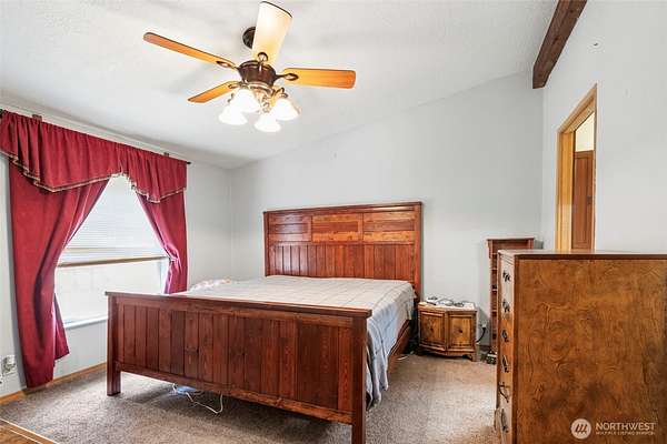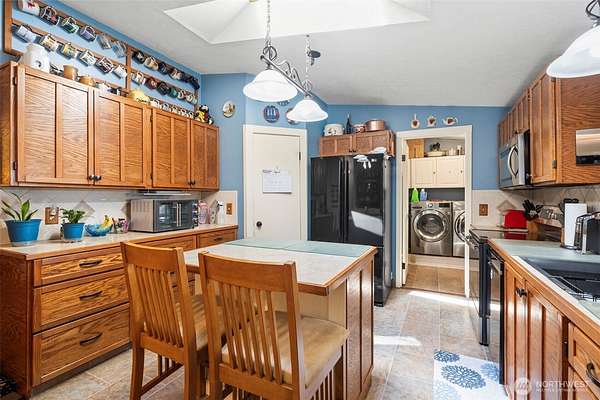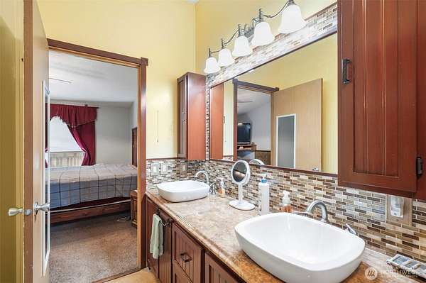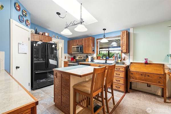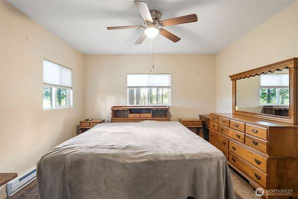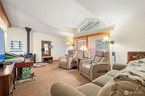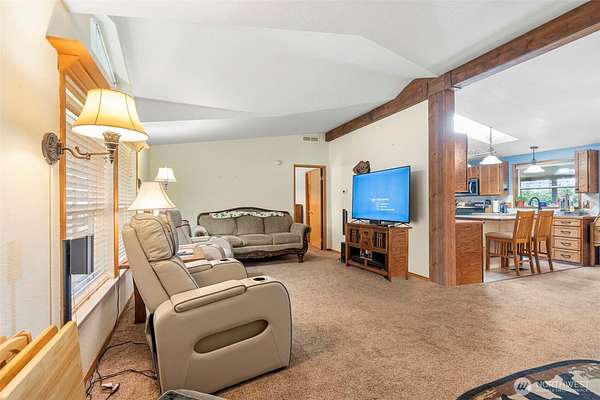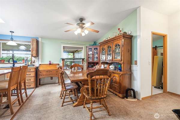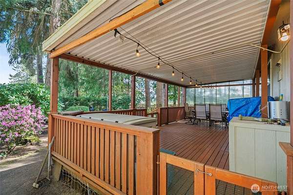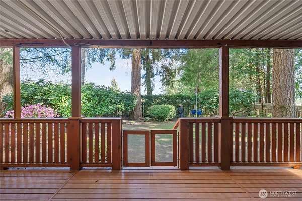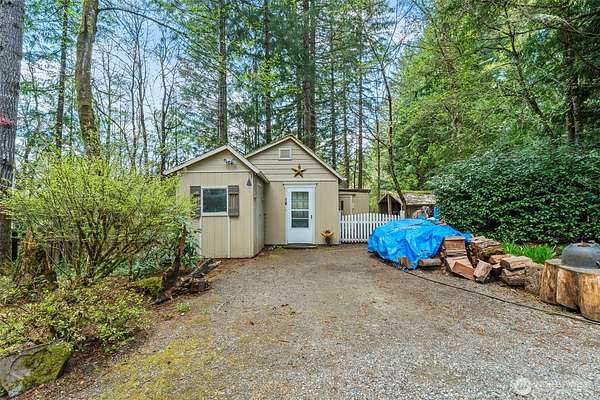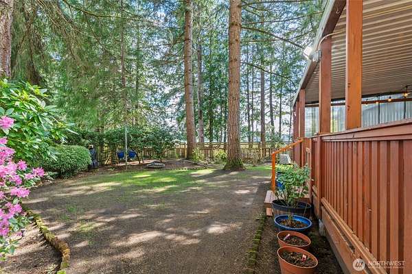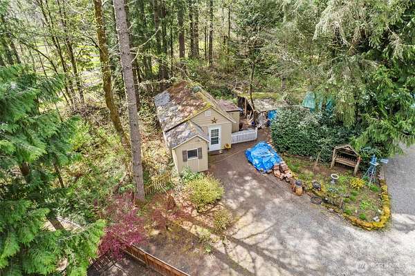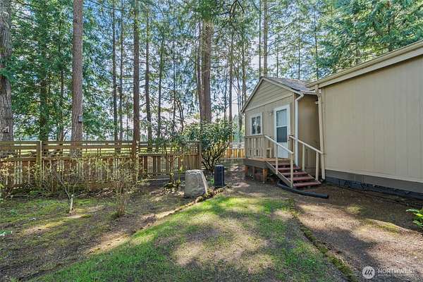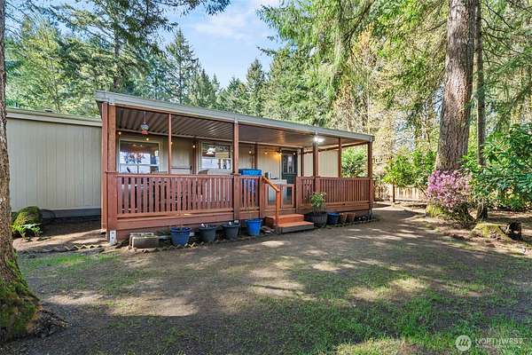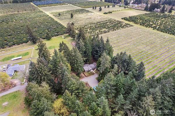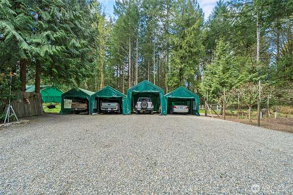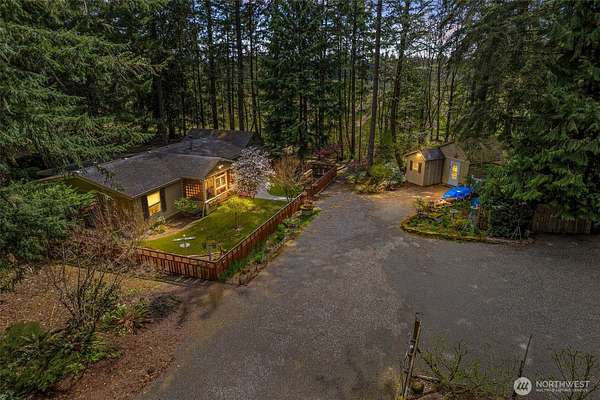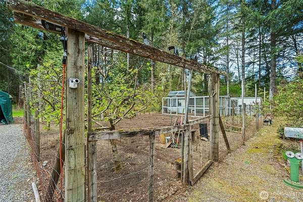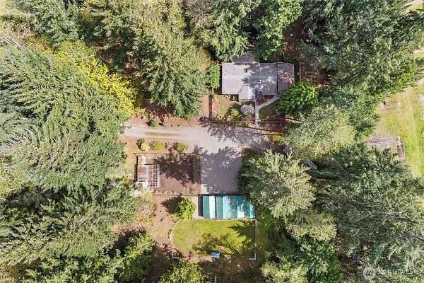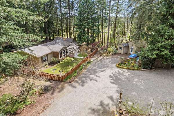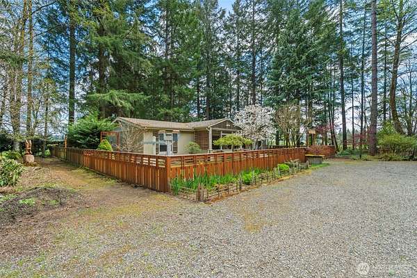 Secluded and charming, this 3-bedroom, 1.75-bath home sits on nearly 2.5 level, wooded acres at the end of a private road, bordering the Meridian Seed Orchard. A property that feels worlds away yet keeps every convenience within easy reach. Inside, vaulted ceilings and an open living space create an airy, comfortable feel. Custom kitchen cabinetry and a wood-burning fireplace give the home warmth and character. Two bedrooms and an upgraded 3/4 bath with walk-in shower are thoughtfully positioned at one end of the home. Tucked privately away on the opposite end, the primary suite offers heated floors, a jetted soaking tub, dual vanity, and walk-in closet. A ~300 sq ft addition with private entrance, completed in 2019, adds flexible living space for guests, a home office, or fourth bedroom. Step outside to a covered front patio where quiet mornings begin with coffee and views of Mount Rainier on a clear day — with nothing between you and the tree line but your own land. The property is fully fenced in key areas, with a private dog park, enclosed garden, and chicken coop giving the grounds real daily function. A large shop stands ready for hobbies, gear, and weekend projects, while four poly carports and extended parking keep everything organized and protected. Garden-like landscaping throughout completes the feel of a true private retreat. Minutes to downtown Olympia, JBLM, Costco, Providence St. Peter Hospital, and easy I-5 access to Tacoma. A rare find in the South Sound.