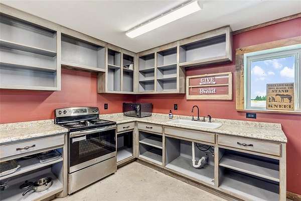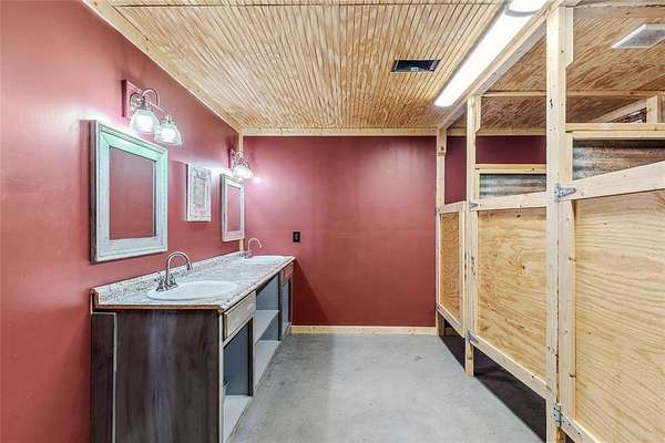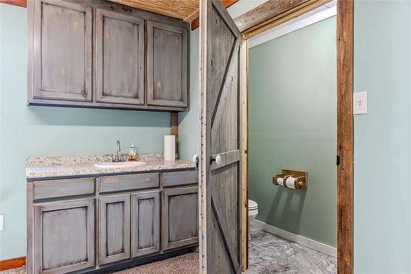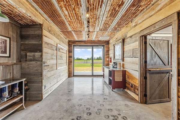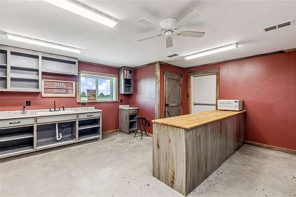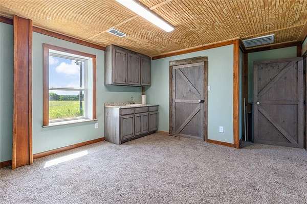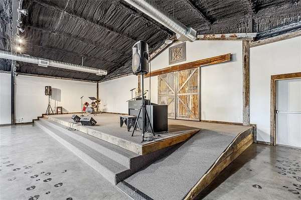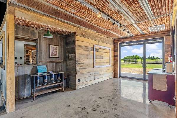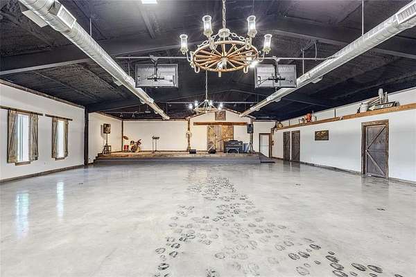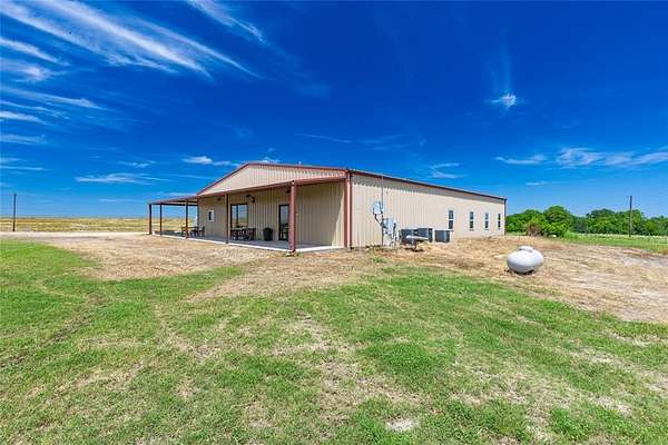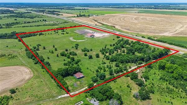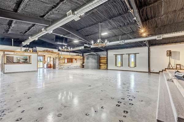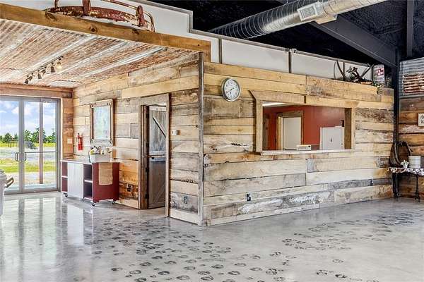 Nearly 34 acres of scenic property is situated just outside the ETJ of the city of Paris. It is has lots of character that you won't find elsewhere! The main entrance to the primary structure requires one to move through a large grain bin. The building has a full kitchen with a pass-thru window and bar sporting rough cut lumber, a high ceiling with exposed HVAC, and a recessed ledge along the main bay wall that provides a great display for products or decor. There is a large entry on the south side of the building, which is big enough to drive a small farm tractor through! There are multiple rooms along the east side of the main bay providing excellent office spaces. The sealed concrete flooring and large open bay make this structure easily modified to meet most any need. The bay could serve as seating for events, or convert to storage space if needed. Along the road at the primary entry stands a grain bin which is well suited for additional signage.
