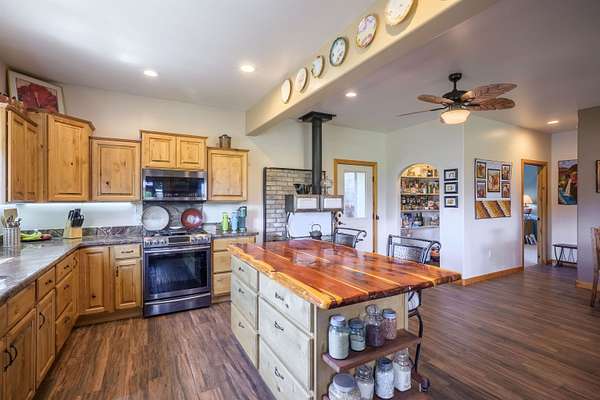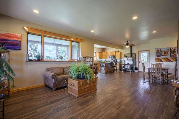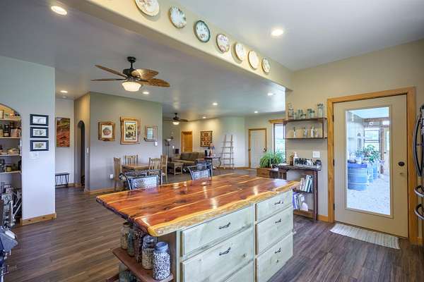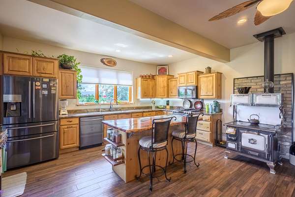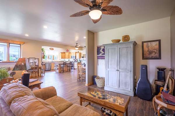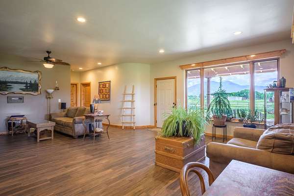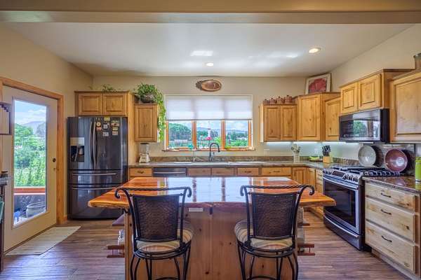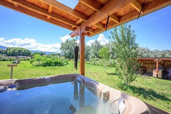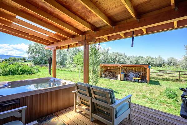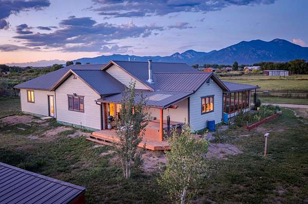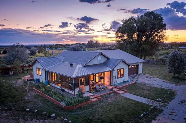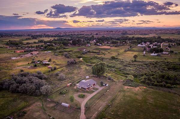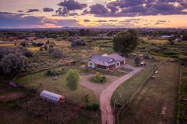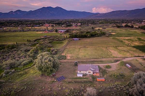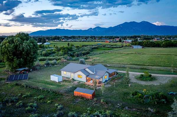 RIVER FRONT PROPERTY! Rare opportunity to own a beautifully maintained, custom-built home on 2.3 acres. Property has direct Rio Fernando river frontage with acequia, 2 irrigated acres of water. Fully fenced and gated, 360 degree of mountain views just 2.2 miles from Taos Plaza. This private and serene property features a 2-bedroom, 2-bathroom residence with an open floor plan and two spacious bonus rooms each with their own separate entrances-ideal for a studio, office, or guest suite. The interior offers Radiant in-floor heating, Pella Thermopane windows, ceiling fans, and natural Southwestern finishes, including marble countertops and Knotty Alder cabinets and doors. The kitchen is both functional and elegant which includes a walk-in pantry and a kitchen island with plenty of space for bar stool seating. The home opens to two covered porches, one of which faces west and includes a hot tub with stunning mountain views. The property boasts mature trees including Aspen, Blue Spruce, Asian Willow, native grasses, and fruit trees, as well as berry bushes, two established organic gardens and a hoop house. A 8'x25' attached green house/sunroom offer year-round growing potential. Sustainability is further enhanced with a newly installed 6.5 KW solar system. Horses are welcome. Additional amenities include an oversized heated two-car garage. Second bonus room currently used as a work shop. Also a wood shed and a metal utility shed. There is an RV gravel pad with utility hookups. A private 1/4-mile driveway leads through an open valley, offering exceptional privacy and a unique lifestyle just minutes from the heart of Taos. The property is zoned R-3, V-N