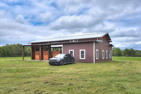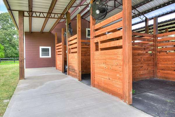 601 Bethcar Church Road is a fully fenced and gated 5-acre property located just minutes from Aiken's premier equestrian venues. This unique offering features an open-breezeway 6-stall barn with mats, fans, and removable dividers for customizable stall sizes. Attached to the barn is a loft-style lounge, creating a comfortable space to unwind. The main level includes an open-concept modern kitchen with brand-new appliances, a combined laundry room, and a full bathroom. The lounge provides generous storage and versatile space for relaxation or entertaining. Upstairs, the loft overlooks the property, offering scenic views and a serene retreat. Additional amenities include a spacious feed/tack room that could also serve as an office, as well as access to a community riding area for training and exercise. A wooded area at the front of the property offers potential for a shaded paddock, while the open layout allows flexibility to add fencing or further customize the land to your specific equine needs. 601 Bethcar Church Road presents a rare opportunity to own a functional, well-appointed equestrian property in a prime Aiken location-ready to be tailored to your vision.