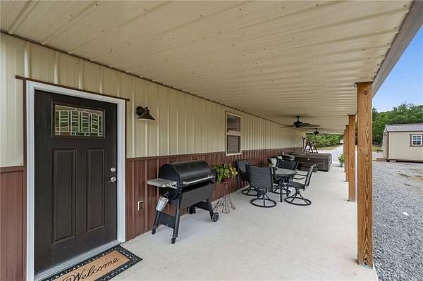 Gorgeous barndominium on a park-like setting minutes to the Clifty Boat Ramp in Eureka Springs, AR! Tucked off the road at 601 County Road 152, this well-kept retreat offers flexible purchase options of 8+-, 22+-, or 39+- acres--bring your dreams, animals, and toys. The 2-bed, 2-bath layout features two living areas for easy entertaining or a home office/media space. An oversized garage provides exceptional storage/workshop potential for boats, UTVs, and equipment. Outdoors you'll find manicured grounds that truly feel like a private park, plus a travel-trailer/RV hookup for guests or adventure-ready weekends. Enjoy quiet country living with quick access to Beaver Lake recreation fishing, boating, and swimming just about 5 minutes away--while still close to the dining, arts, and charm of historic Eureka Springs. A rare NWA find that blends low-maintenance living with room to grow, buy the home on 22+- acres, add more land now, or secure the full 38+- acres for your private estate or hobby farm.