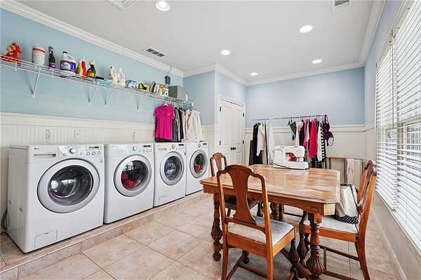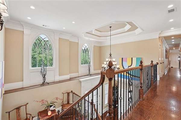 Inside, you're greeted by soaring ceilings, a two-story great room, formal living and dining areas, and a main-level owner's suite that feels like a luxury retreat. Upstairs, multiple ensuite and Jack-and-Jill bedrooms provide privacy for family or guests, while a finished terrace level offers a second kitchen, theater, gym, and additional bedrooms--ideal for multi-generational living or au pair quarters.