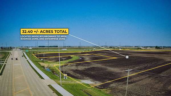 Est $24,752/moAmazing opportunity for development! This property is 32.4 +/- acres located on the new I-57 exit 318 interchange nestled perfectly between two growing communities! The area is in the midst of rapid development which makes this property extremally versatile for development. Located in the Bourbonnais city limits means this property is in a Business zone, TIF Area and the Kankakee River Valley enterprise zone; All of these will help with profitability and infostructure for development! Two prime parcels are available in this premium location.