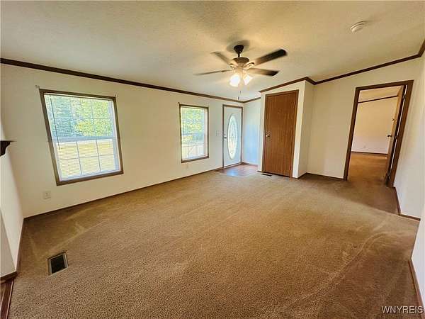 Est $1,464/moMotivated seller. Welcome to this beautifully maintained 3 bedroom, 2 full bath modular home offering almost 1800sq ft of comfortable living space on a peaceful dead end road in the countryside, only 45 minutes from Downtown Buffalo, 20 minutes from Fredonia/Dunkirk, and only 10 minutes to the beach! Set on 2 acres of land, this property provides the perfect blend of privacy, space, and convenience. Step inside to find an inviting living room, spacious family room, and a dining area-ideal for both everyday living and entertaining. Master bathroom has a shower and a whirlpool tub. Includes a spacious two-car garage with full electric service, perfect for parking, storage, or a workshop.