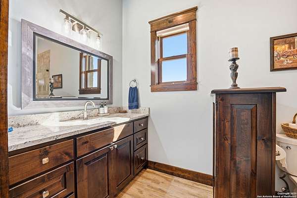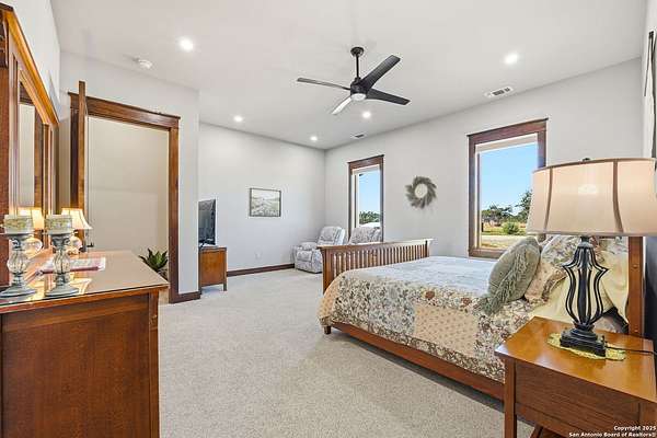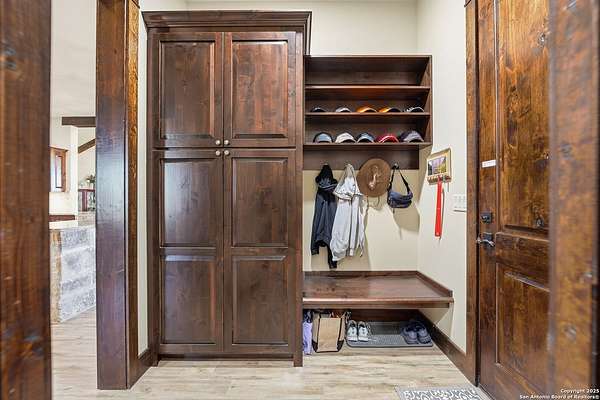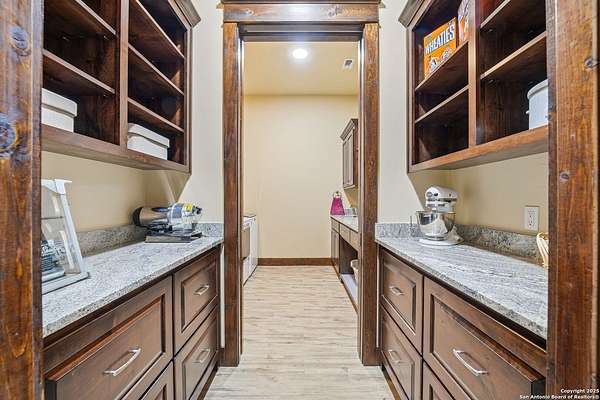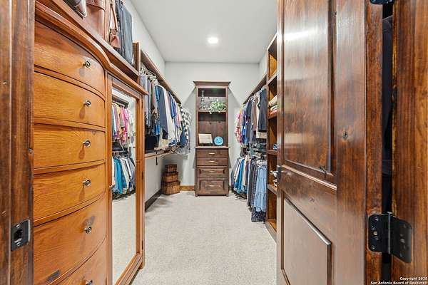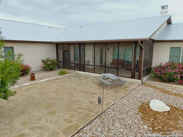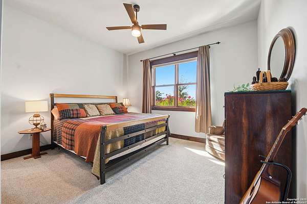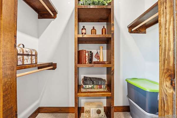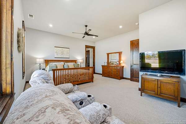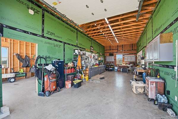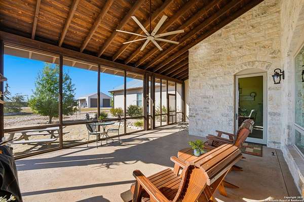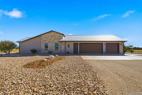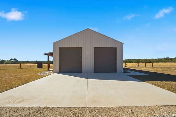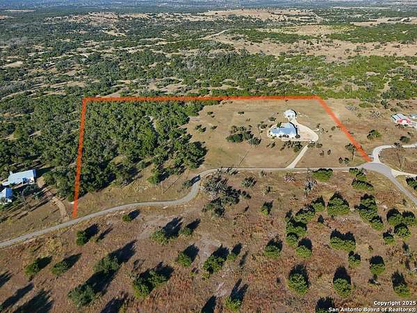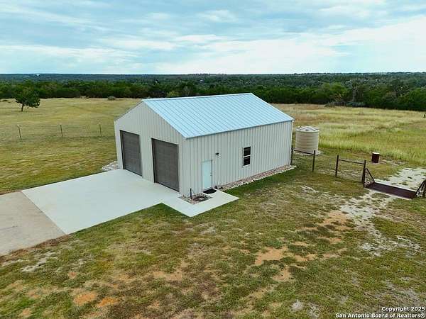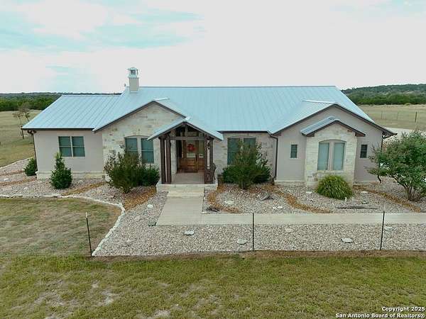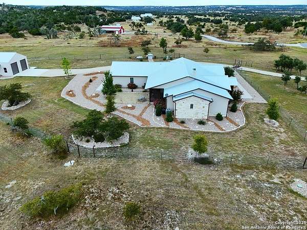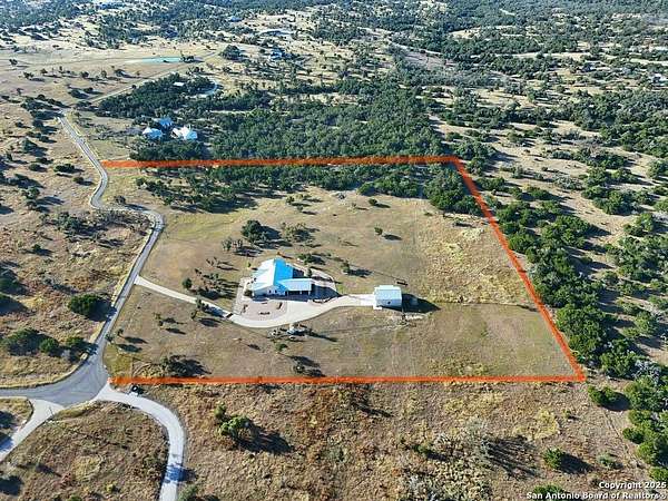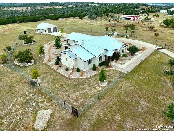 Stunning Hill Country Estate on 12.5 Acres with Luxury Custom Home & RV-Ready Workshop. Experience the best of Hill Country living on this private 12.5-acre homesite, perfectly positioned for long-range views and surrounded by mature trees, natural landscape, and peaceful seclusion. Located in a gated community with no HOA, the property offers both security and freedom, along with an Agriculture Exemption on 11.5 acres for significant tax savings. Built by SS Texas Home Builders, this 3,337 sq ft custom home showcases exceptional craftsmanship and thoughtful design throughout. The layout includes four bedrooms and four full bathrooms, featuring a secondary primary bedroom with its own ensuite bath to provide comfort and privacy for guests or multigenerational living. Inside, the home welcomes you with tile flooring, vaulted ceilings with exposed wooden beams, and a striking stone fireplace that anchors the spacious living room. The chef's kitchen is a centerpiece of the home, offering custom-built pull-out cabinetry, a Fisher & Paykel six-burner gas range, stainless steel KitchenAid microwave/oven, dishwasher, and refrigerator, along with a large center island with a prep sink and a full butler's pantry with additional storage and workspace. The primary suite serves as a serene retreat with a private sitting area and a spa-inspired bathroom featuring a walk-in shower, garden tub, dual vanities, and a generous walk-in closet with a dedicated dressing area. The custom closet system provides built-in shelving for linen, shoes, and general storage organization. Outdoor living is equally inviting, with a screened-in back patio equipped with sun shades and designed for year-round enjoyment of the surrounding acreage. The landscaping is supported by efficient drip irrigation, blending convenience with natural beauty. This estate also includes exceptional garage and workshop amenities. The oversized three-car attached garage offers 1,120 sq ft of space and includes a full bathroom, making it ideal for projects or extended use. The separate 1,140 sq ft workshop features 11-foot doors along with plumbing and electrical connections, making it perfectly suited for RV storage, car enthusiasts, hobbyists, or anyone needing substantial workspace and storage. Altogether, this property delivers a rare combination of land, luxury, privacy, and usability-an extraordinary Hill Country estate designed for both comfort and versatility.