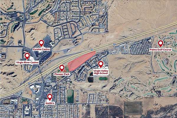 Prime 11.9 +- acres commercial parcel located at 601 E. Hillside Dr in Mesquite, NV with C-2 zoning. Ideal for retail, hospitality, office park, shopping center, fast food, storage facility, etc It has high I-15 visibility and offers strong traffic exposure and existing billboard income. Gently sloped with buildable pads and surrounded by residential neighborhoods, resorts, and growing commercial activity. A rare opportunity in a fast-growing market just 80 miles from Las Vegas and 36 miles to St. George, UT. Soils report, Survey done and a Phase 1 Study dated 11/2019. Income producing, lighted Billboard with a 10 year lease...Power is on the property. Cash or Possible Owner carry with substantial down for short term. Lots of potential...ready for your vision and development!