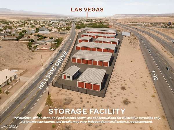 From I-15 North, Exit east on Sandhill Blvd to Hillside, go North to property on the left. Next to Pioneer Park Ballpark.