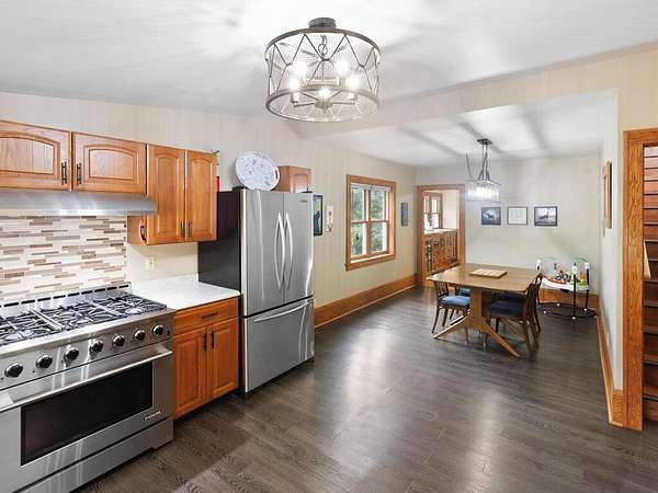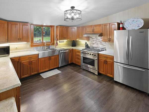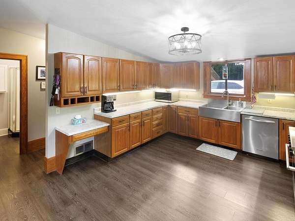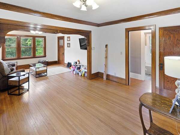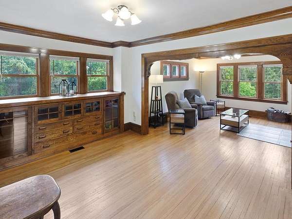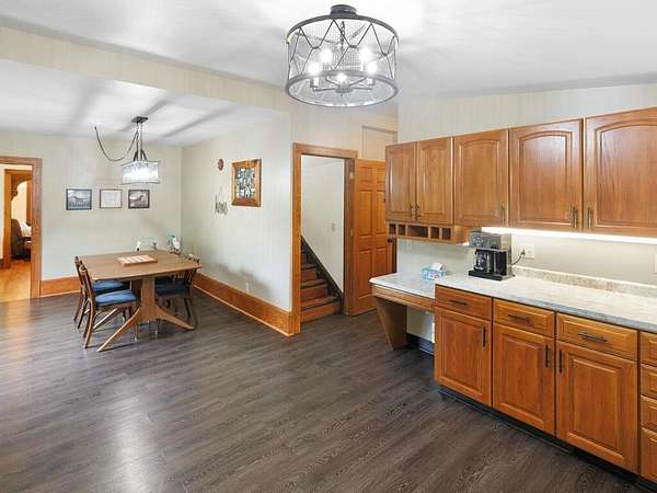 Step into timeless elegance with this beautifully renovated 5 BR, 4 Bath home that seamlessly blends classic character with modern comfort. Featuring stunning woodwork throughout, this home offers warmth and craftsmanship. The spacious layout includes a potential mother-in-law suite on the lower level - perfect for extended family, guests, or rental income. The updated kitchen and bathrooms provide stylish functionality, while the bedrooms offer space and versatility for every lifestyle. Outside, you will enjoy 7.8 acres. Lots of wildlife to watch from the window. The garage has a loft and a deck - ideal for entertaining, relaxing, creating a private retreat or storage. This home is truly a rare find, offering both charm and flexibility in one beautifully maintained package. Transferrable home warranty which is good until 3-9-26.