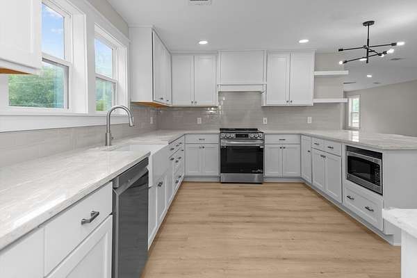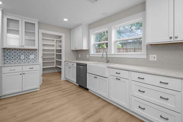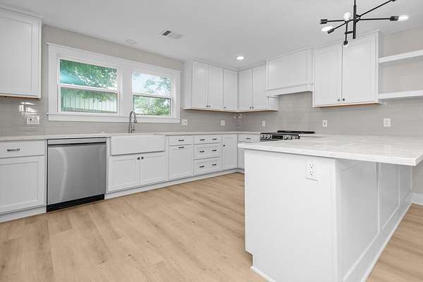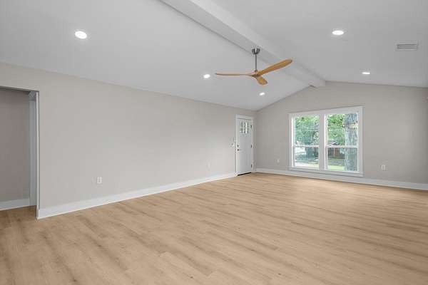 Step into this stunning five bedroom, three bath home near Crockett's charming downtown square! Taken down to the studs and fully renovated, this home offers modern comfort, a bright and welcoming environment, and the convenience of being right in town. The spacious living room flows into a gorgeous kitchen featuring quartz countertops, custom cabinetry, and a pantry and laundry room off of the kitchen. Updated bathrooms boast stylish, functional finishes, while ample closet space ensures plenty of storage. Each bedroom has two windows and large closets. The primary bedroom has a fantastic en-suite bathroom with his and her sinks and a large tiled shower. Sitting on 1.75-acres with beautiful mature trees, the backyard is ideal for outdoor living, gardening, or even a future pool. Minutes from shopping, dining, and entertainment, this home offers both country charm and a small-town feel. With the square in walking distance, great events like Christmas in Crockett are at your fingertips.