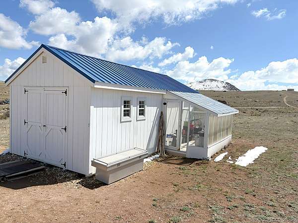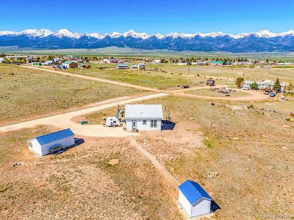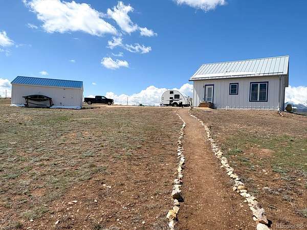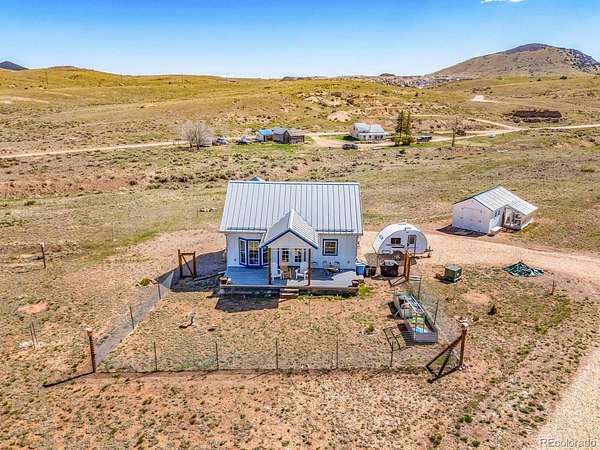 DARK SKIES RETREAT, MOUNTAIN VIEWS: Refined mountain living awaits in this beautifully crafted custom cabin in Westcliffe's renowned Dark Skies community. This 720 sq. ft., one-bedroom home is thoughtfully designed with durable 2x6 construction and a bright open-concept living and dining area beneath soaring cathedral ceilings. The custom kitchen features crushed quartz countertops, soft-close cabinetry, and quality finishes throughout. Large windows capture stunning views of the Sangre de Cristo Mountains while filling the home with natural light. Step outside to a full-length, partially covered front deck-perfect for morning coffee, relaxing evenings, or world-class stargazing. Comfort is ensured year-round with heating and cooling systems, plus a Vermont Castings propane stove. The home also includes a $5,000 water softener with a reverse osmosis system. Inside, you'll find a convenient ensuite ¾ bath and a laundry/mudroom with a stackable washer and dryer. Set on a crawl space, the property offers practical extras including a fenced dog run and two versatile outbuildings-both wired with electricity-including a storage building with attached greenhouse and a cozy shed. Located just minutes from town.