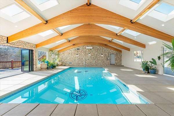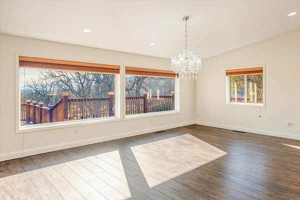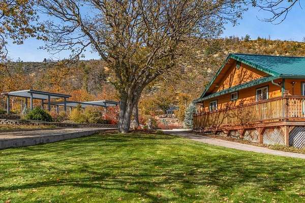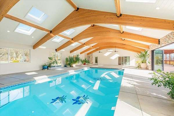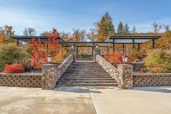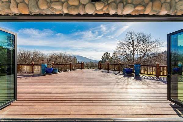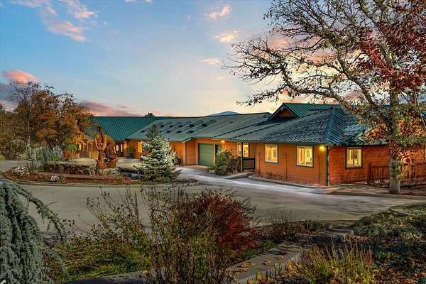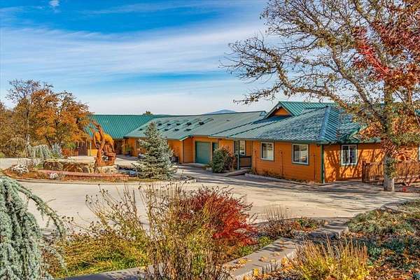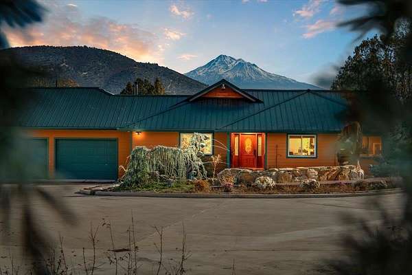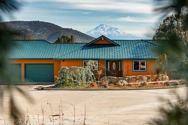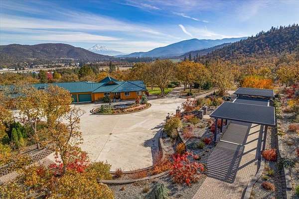 Exceptional gated estate just inside Yreka city limits with stunning Mount Shasta views! This rare property features two renovated residences connected by a stunning heated indoor pool pavilion. The primary residence (2,940 sq ft) offers 3 bedrooms plus office with Murphy bed, 3 baths, including a generous primary suite with walk-in closet. Highlights include vaulted ceilings, a grand living area with Mount Shasta & landscaped views, hardwood flooring, Corian countertops, custom cabinetry, and all new interior paint & carpeting. The pool sanctuary showcases the salt water pool, skylights, river rock accents, & a dramatic wall of folding window panels creating seamless indoor-outdoor flow to the sprawling Trex decking and curated entertaining spaces. The guest residence (2,285 sq ft) offers a separate entrance for privacy & flexibility, with three bedrooms including two primary suites, an additional guest bedroom, & a dedicated den/or office. Recently updated and turnkey. Destination-style grounds feature paver walkways, pergola entertaining area, water features, seasonal creek, and private gazebo. A circular drive and mature landscaping complete this rare luxury offering.