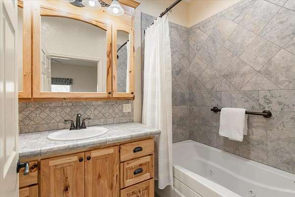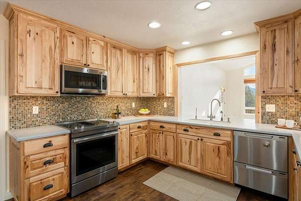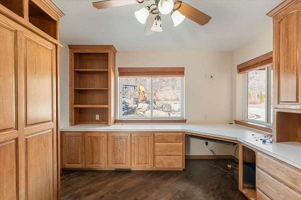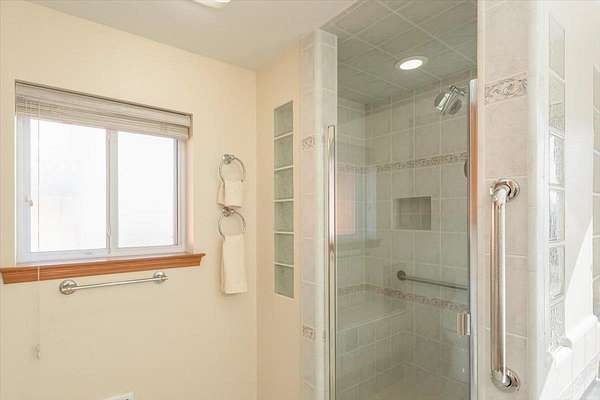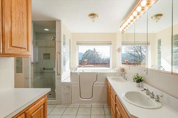- Built-In Desk, Custom Cabinets, Double Sink, French Doors, Jet Tub, Pantry, Shower Enclosure, Skylight, Sun Tubes, Tile Counters, Tile Enclosure, Tile Floors, Tub/Shower Enclosure, Vaulted Ceilings, Walk-In Closet