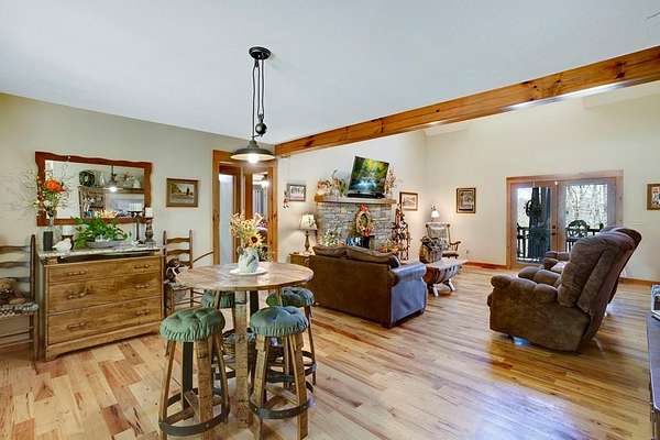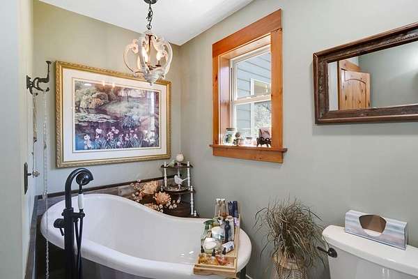 Your perfect UNRESTRICTED mountaintop retreat awaits! Make your appointment today to see this exceptionally maintained and updated home with superior privacy and gorgeous mountain views. Sit by the firepit and listen to nature all around you! The beautifully landscaped front yard leads to the welcoming front porch. On the main floor, you will find warm wood floors leading to the vaulted, fireside family room and dining area. Spacious updated kitchen with all newer stainless appliances, wood cabinetry and granite counters overlooking the sunny breakfast nook. The primary bedroom is on the main level with a fireplace (double-sided with the family room) and a stunning spa bath with clawfoot tub, gorgeous tiled shower and two large walk-in closets, as well as the laundry area. Upstairs has a huge loft overlooking the family room, along with a spacious 2nd bedroom and updated 2nd full bath. The back deck and large screened porch are perfect for enjoying the outdoors. A recently added oversized 2-car garage comes outfitted with a large workshop area and permanent stairs leading to the upper storage loft - this space would make a great bonus room or guest suite! More storage available in the potting shed. New HVAC in 2022, and new well (with reservoir) drilled in 2022, plus new high-tech filtration system!