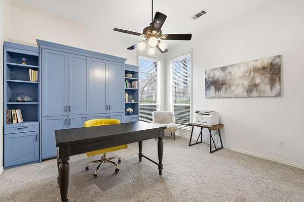 The expansive primary retreat includes a private attached flex space ideal for a home office, executive library, nursery, or fitness studio. The spa-inspired bath offers dual vanities and a walk-in shower, creating a peaceful sanctuary within the home. Upstairs, two secondary bedrooms share a Jack-and-Jill bath and connect to an impressive 21x32 game room designed for entertainment and gatherings.