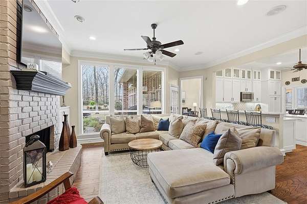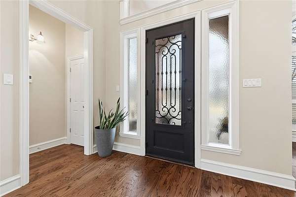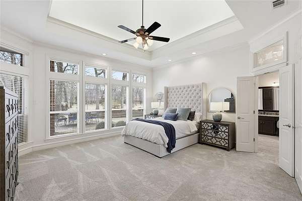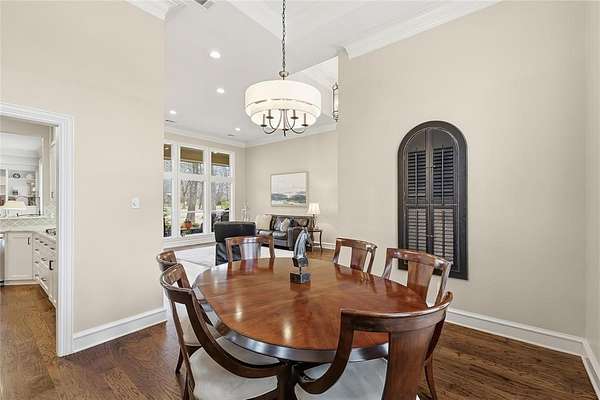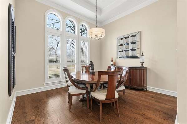 Spanning 3,925 square feet, this 4-bedroom, 3-bath custom home is designed for elevated living and entertaining. The grand living room features soaring 12-foot ceilings and a dramatic wall of windows overlooking the manicured backyard oasis. Tray ceilings in both the formal dining room and primary suite add architectural distinction, while plantation shutters provide timeless refinement throughout.