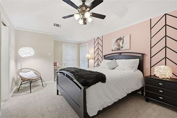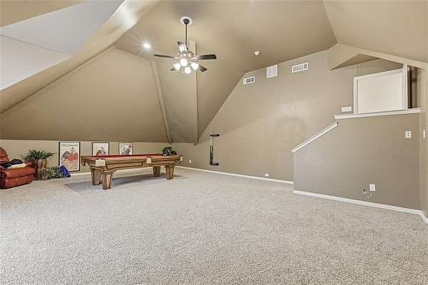 The expansive primary retreat includes a private attached flex space ideal for a home office, executive library, nursery, or fitness studio. The spa-inspired bath offers dual vanities and a walk-in shower, creating a peaceful sanctuary within the home. Upstairs, two secondary bedrooms share a Jack-and-Jill bath and connect to an impressive 21x32 game room designed for entertainment and gatherings.